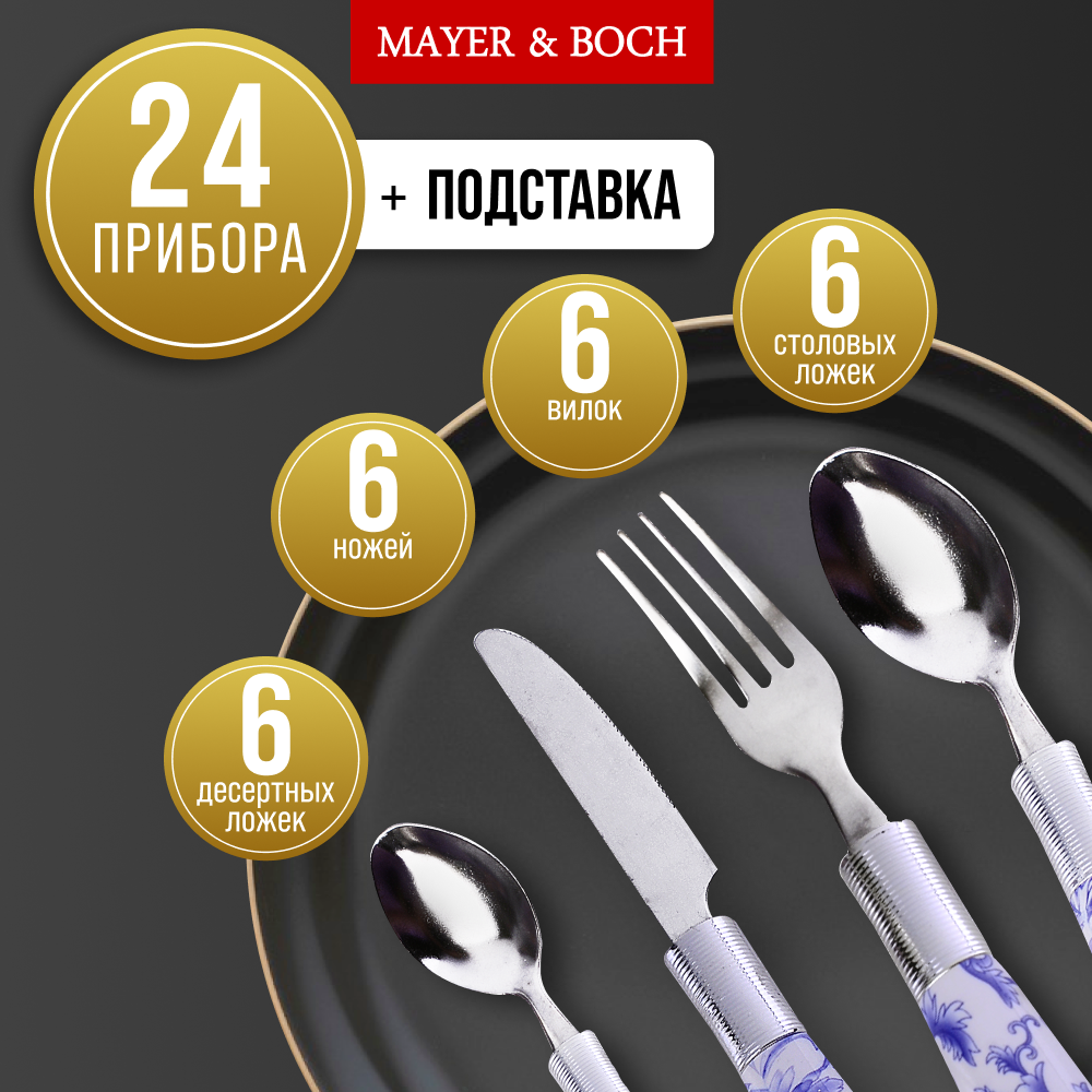 Набор столовых приборов Mayer&Boch, нержавеющая сталь/пластик, на подставке, 24 предмета
