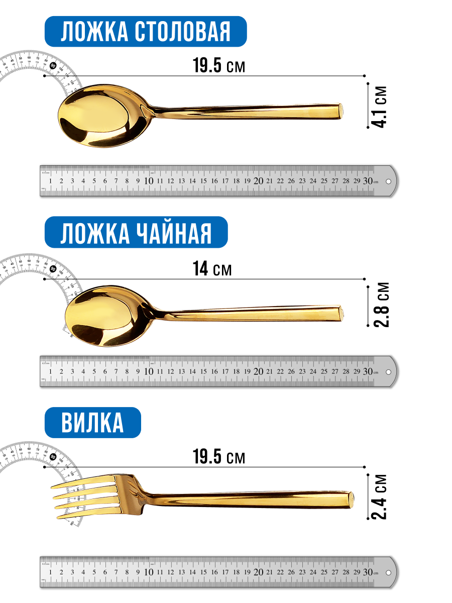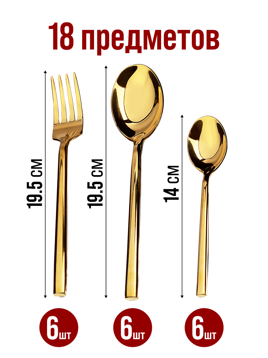 | В набор входит | столовые ложки - 6 шт, столовые вилки - 6 шт, столовые ножи - 6 шт, чайные ложки - 6 шт. |