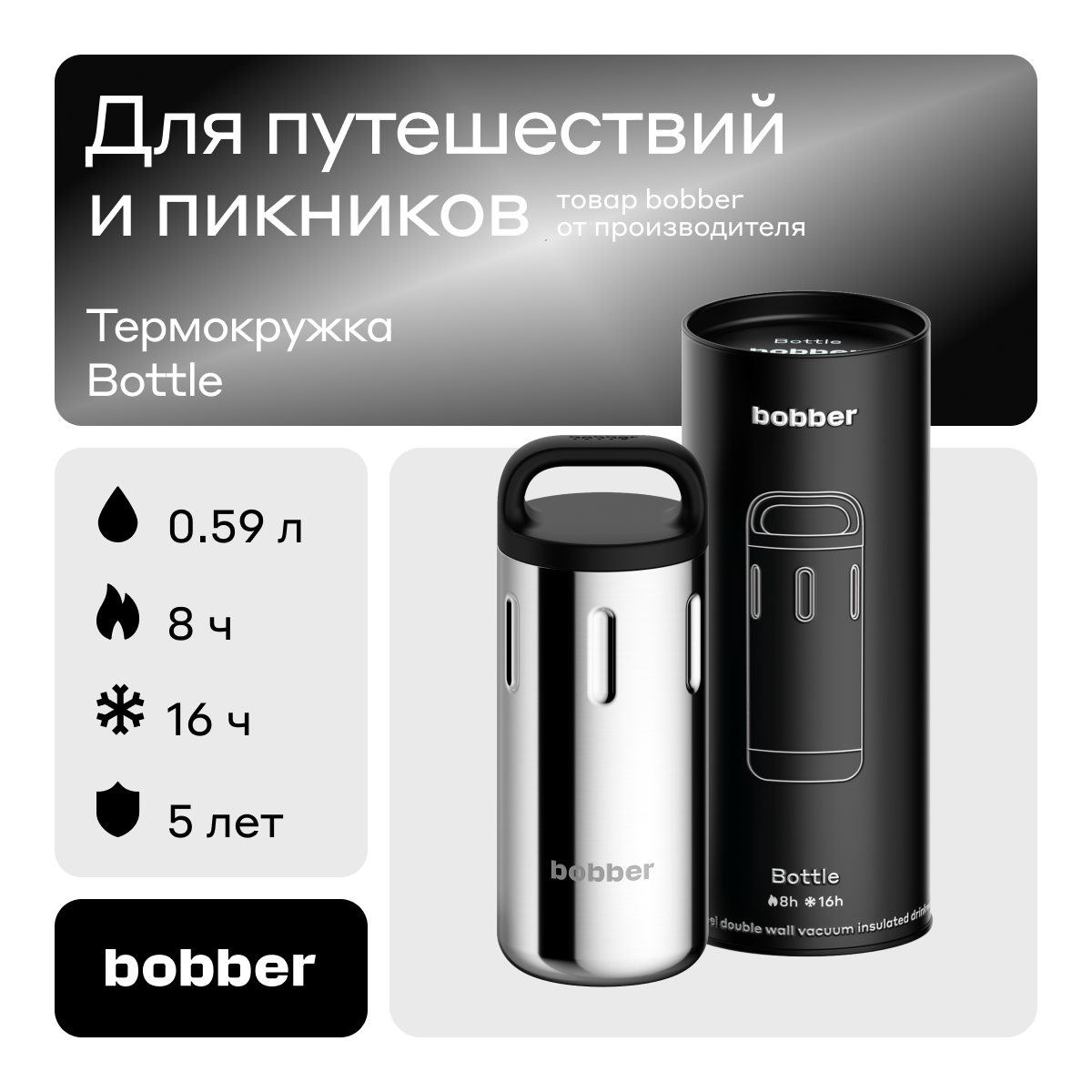 Ниже Вы можете прочитать отзывы на Bobber Bottle-590 зеркальный, ознакомится с подробными характеристиками, посмотреть интересные обзоры и фотографии на Bobber Bottle-590 зеркальный.