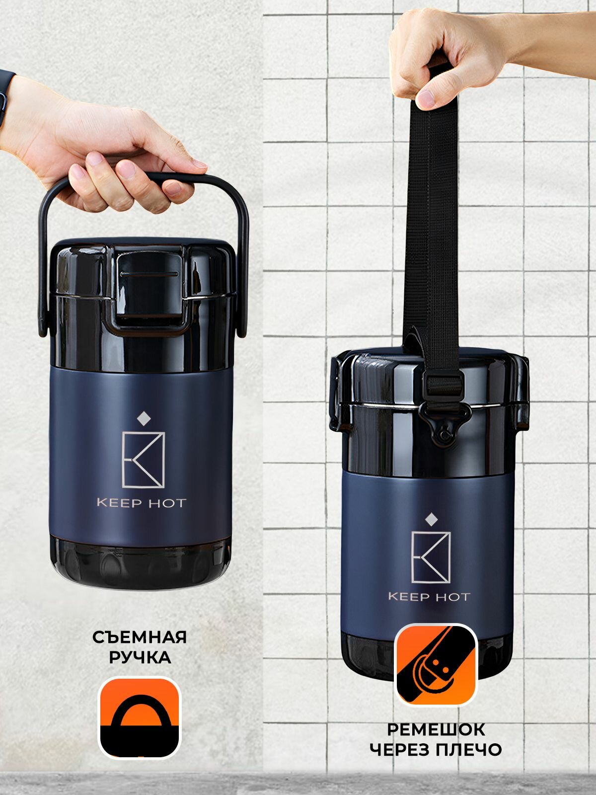 Термос Keep Hot 2-в-1 для еды и напитков, 1900 мл, с широким горлом, ударопрочный, синий