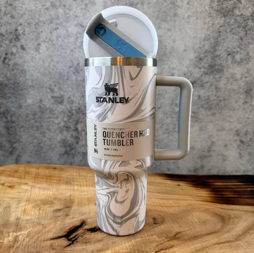 Купить Термокружка из нержавеющей стали для холодных и горячих напитков, Stanley 1.18л, Голубой Мрамор