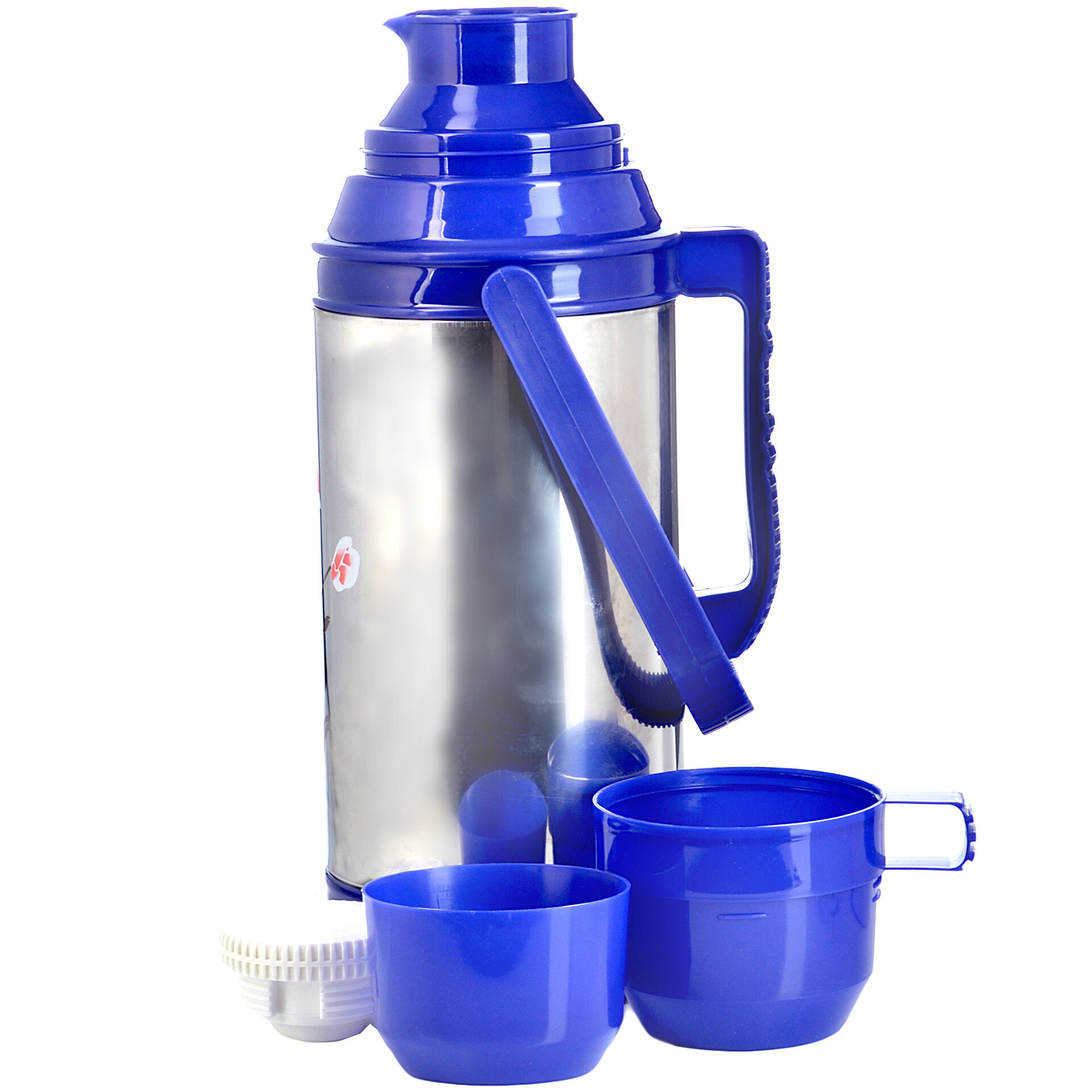 | Дополнительная информация | Диаметр горлышка: 7,5 см. Диаметр корпуса: 15,5 см. Диаметр дна: 15,5 см. Высота термоса: 44 см. Длина с ручкой: 19,5 см. Крышки-чашки - 2 шт. Объем чашек: 450 мл, 750 мл. Поворотная ручка. |
