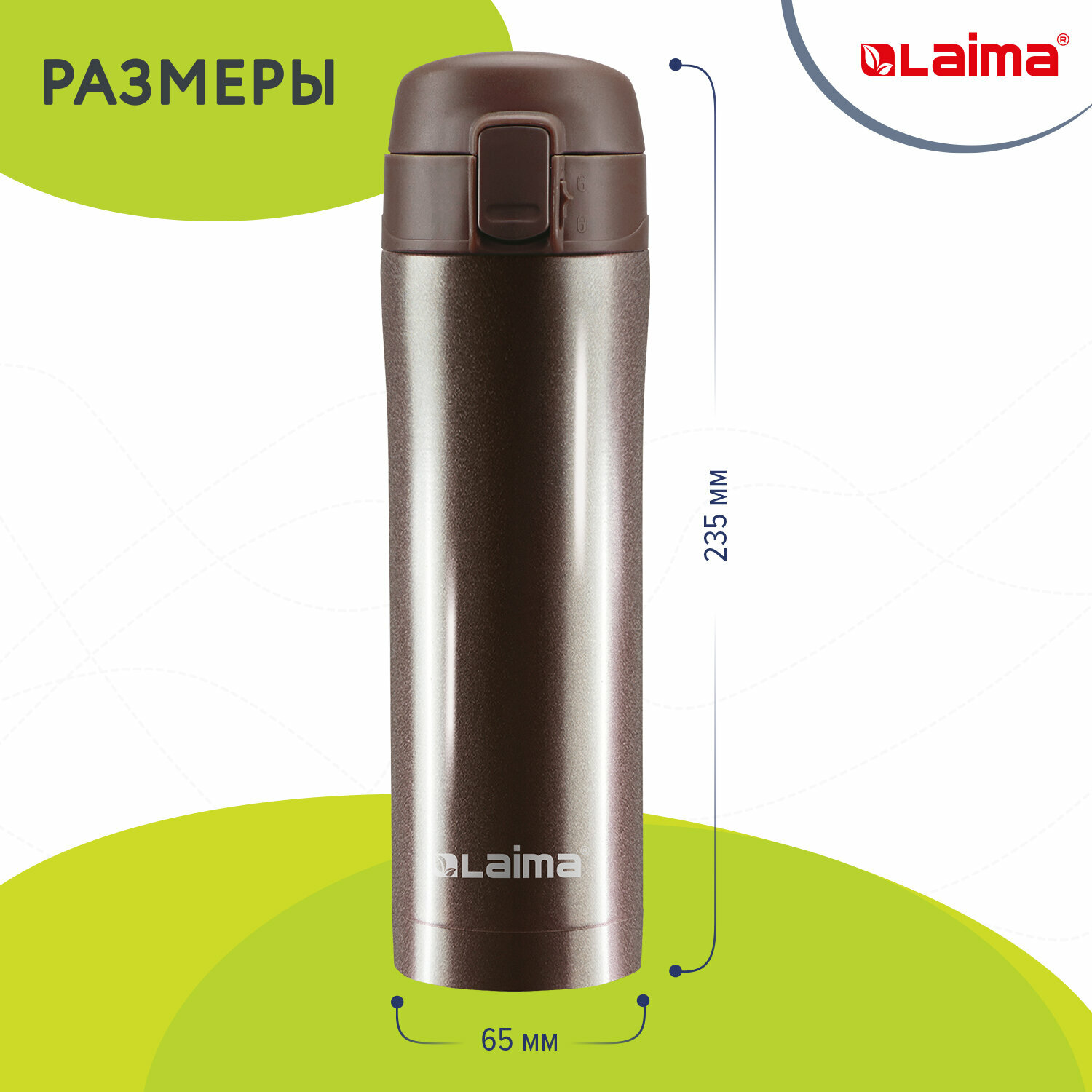 Термокружка 470 мл из нержавеющей стали SUS304, имперский коричневый матовый, LAIMA, 608082