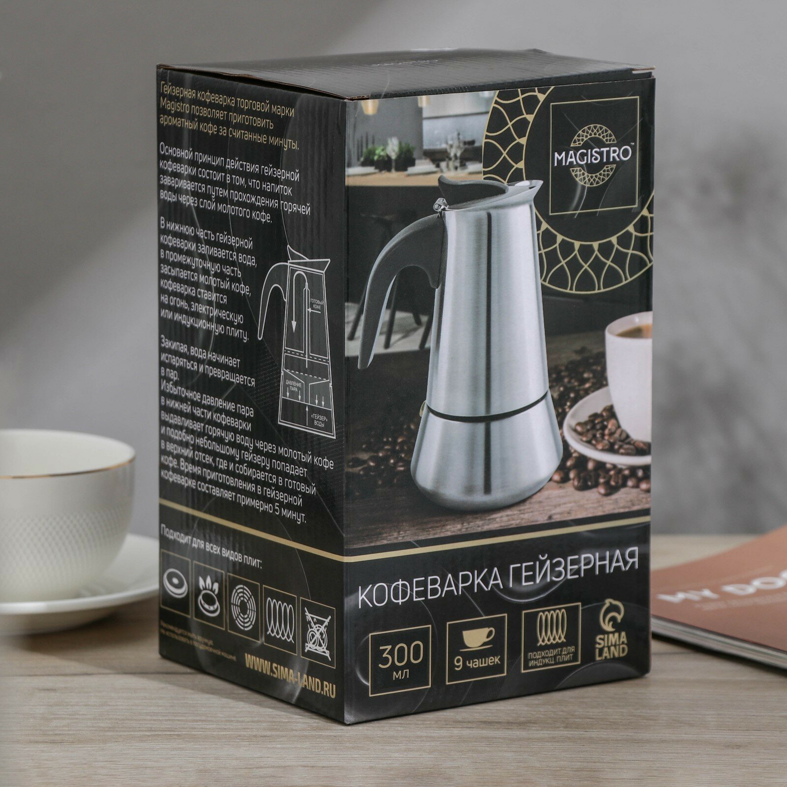 Кофеварка гейзерная Magistro Classic, на 6 чашек, 300 мл, нержавеющая сталь