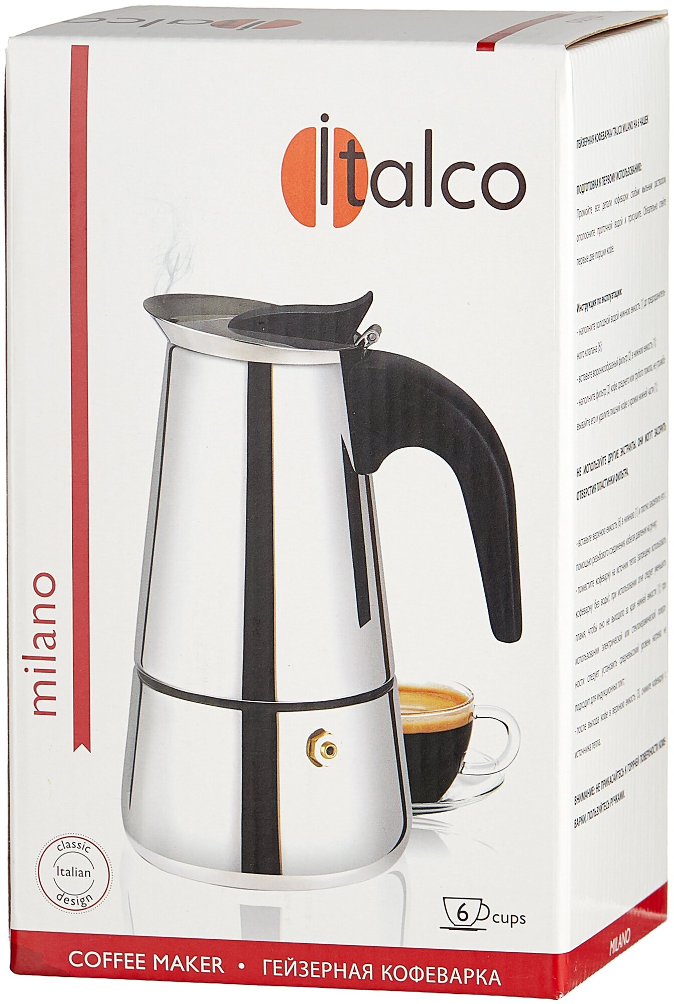Купить Кофеварка гейзерная Italco Milano на 6 порций, нержавеющая сталь