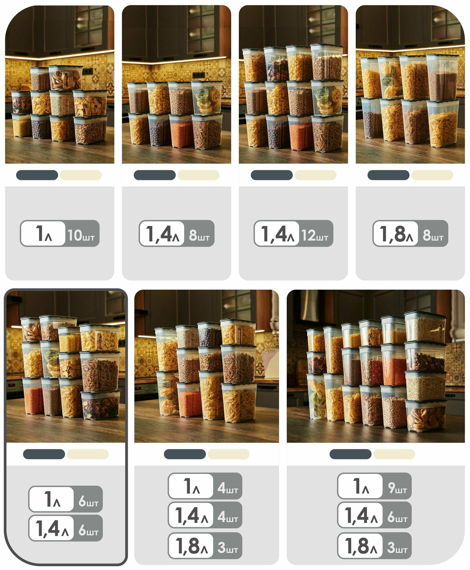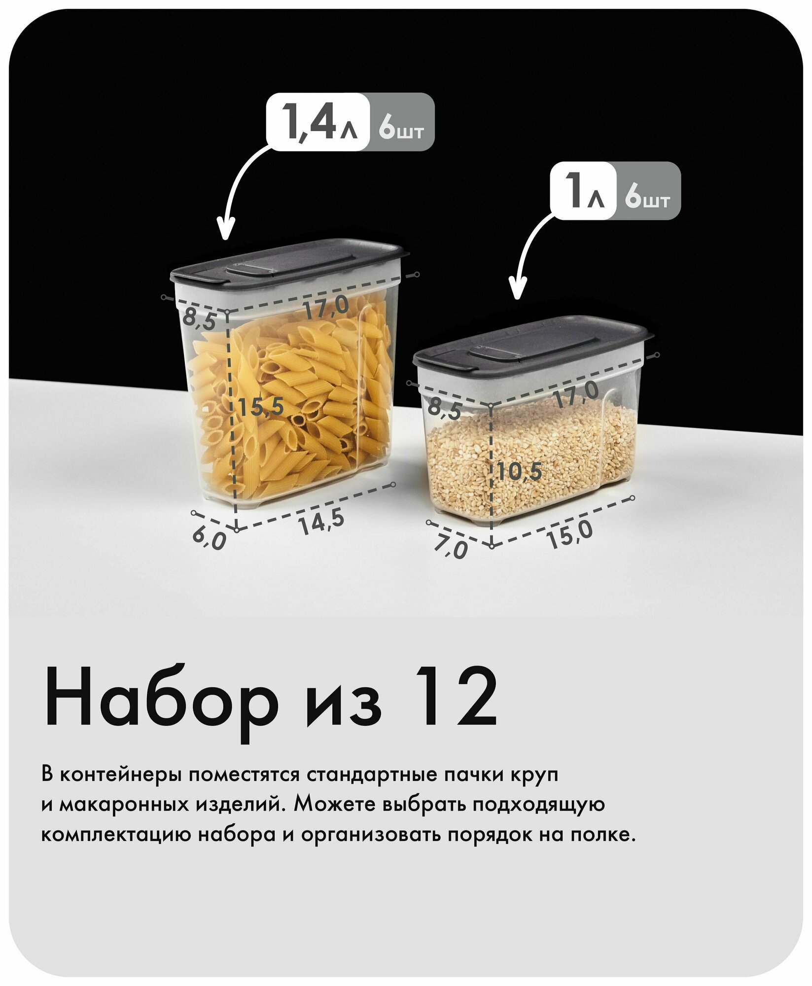 Купить Набор контейнеров для сыпучих продуктов №18 (1лх6шт; 1,4лх6шт) (графит)