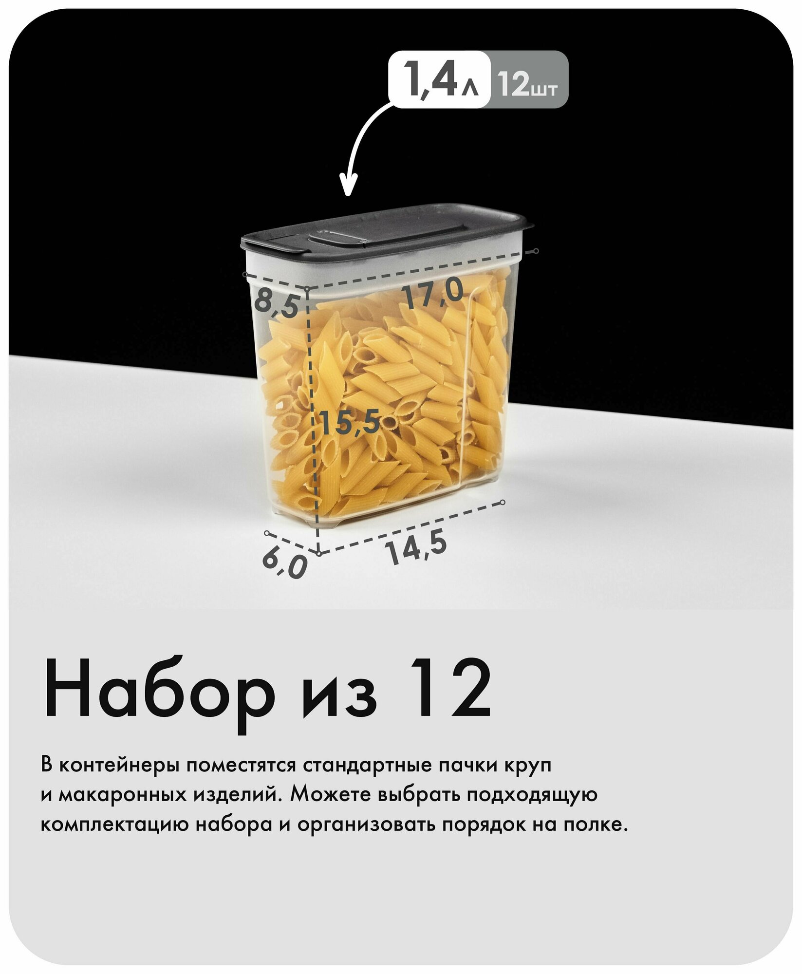 Купить Набор контейнеров для сыпучих продуктов №14 (1,4лх12шт) (графит)