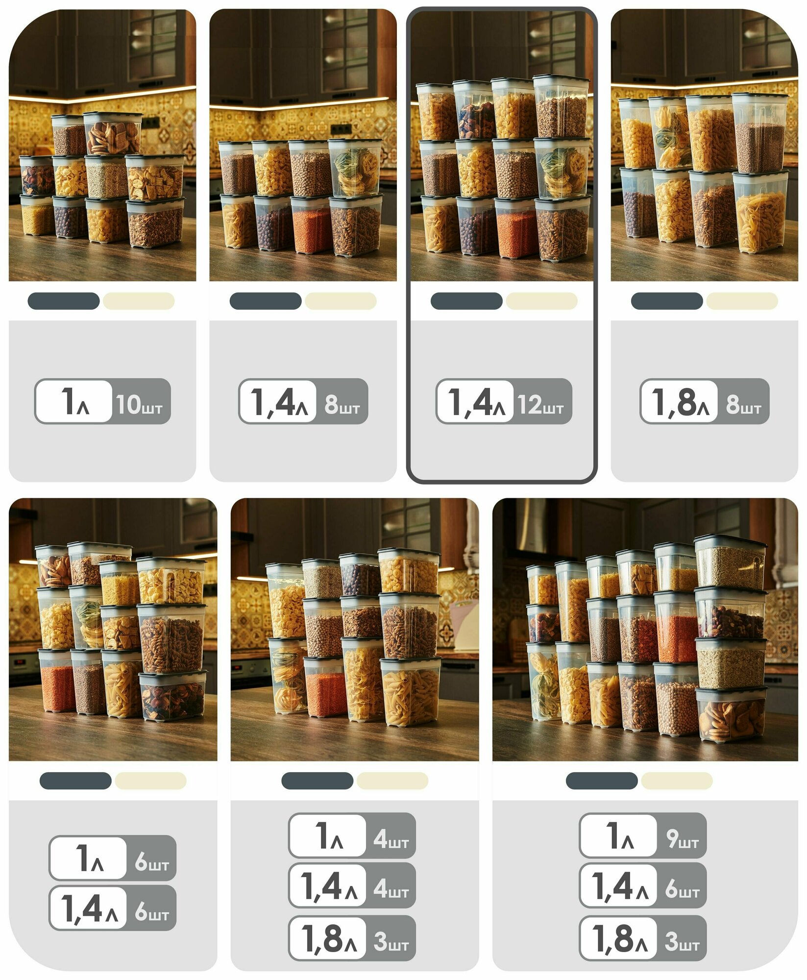 Набор контейнеров для сыпучих продуктов №12 (1лх6шт; 1,4лх6шт) (слоновая кость)
