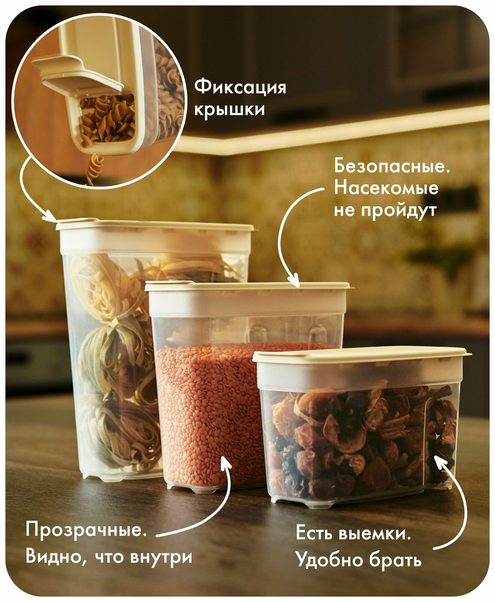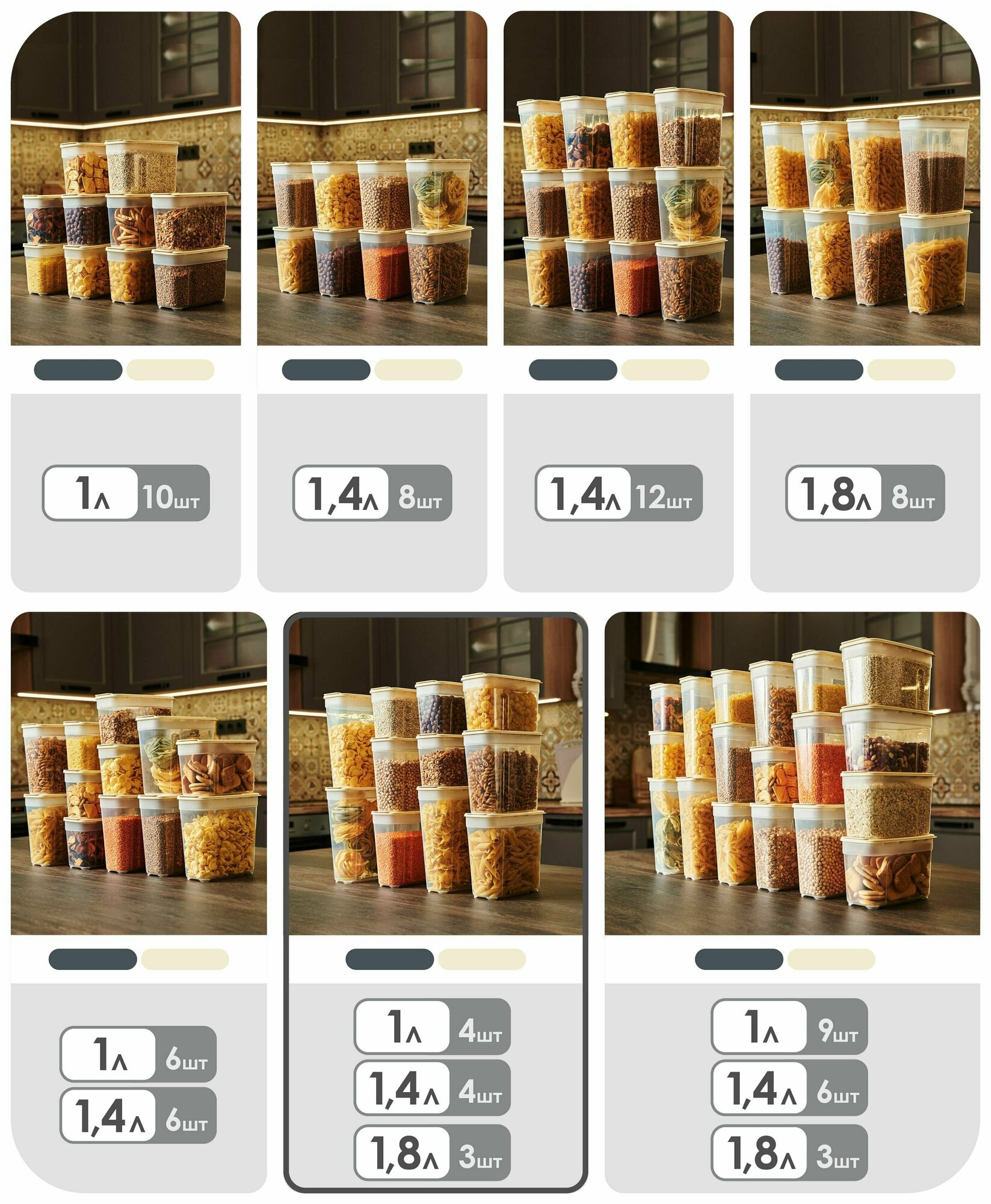 Купить Набор контейнеров для сыпучих продуктов №6 (1лх4шт; 1,4лх4шт; 1,8лх3шт) (слоновая кость)