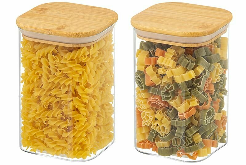 Купить Набор 2 банок для хранения 1,1 л 10*10*15,5 см "Crystal glass"+ бамбук.крышк с силикон.проклад, стекло