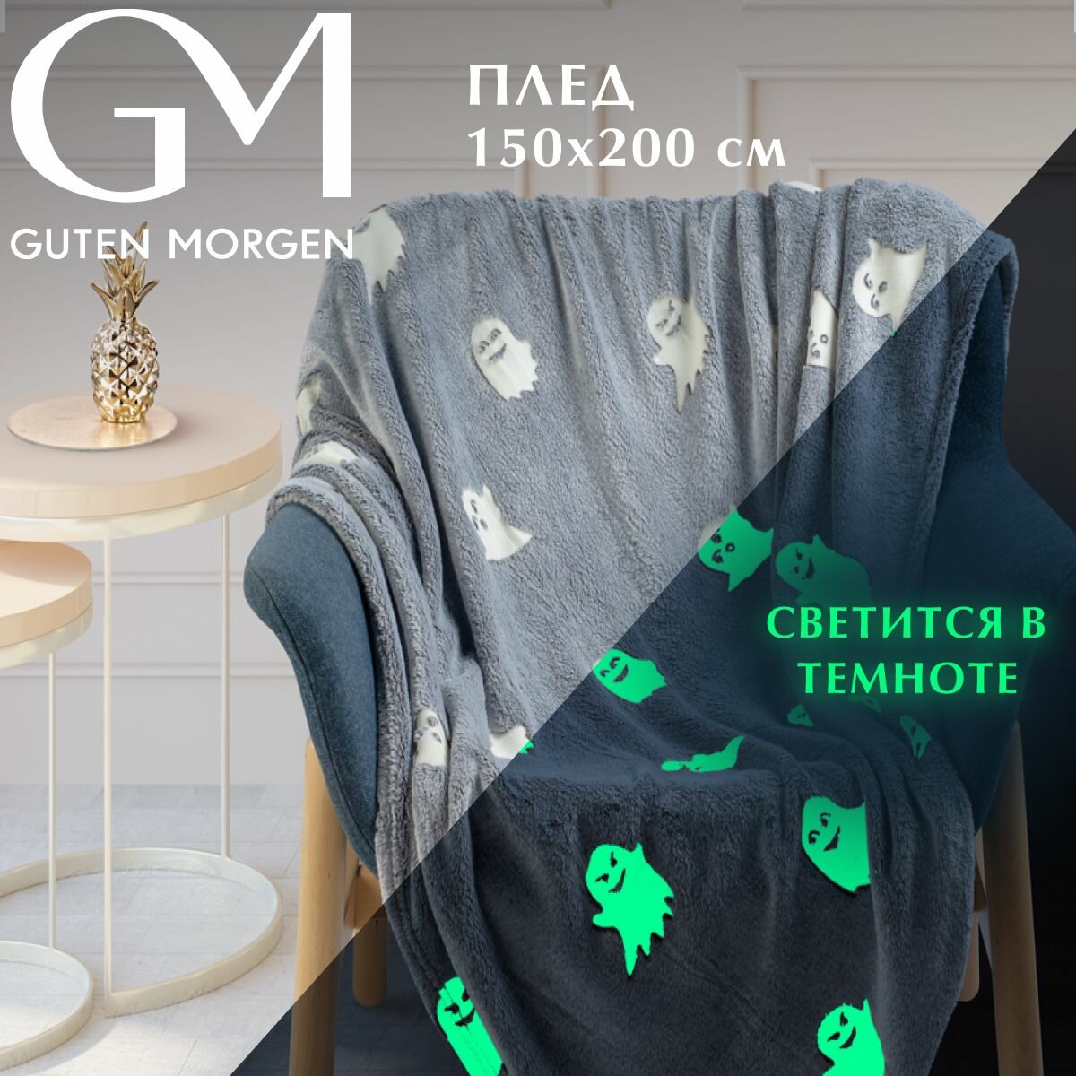 Купить Плед (покрывало) Велсофт Guten Morgen Жаккардовый Привидения 150х200 см