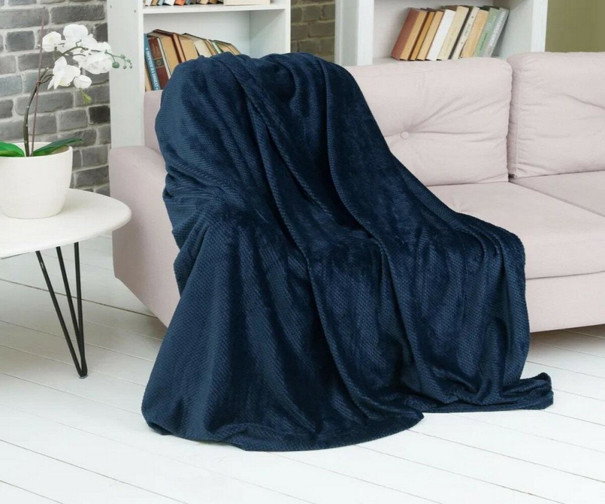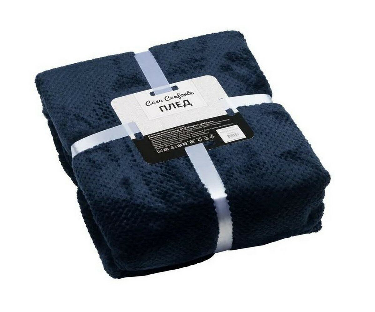 Плед велсофт 160х220 см фактурный однотонный, Casa Conforte Нонна темно-синий