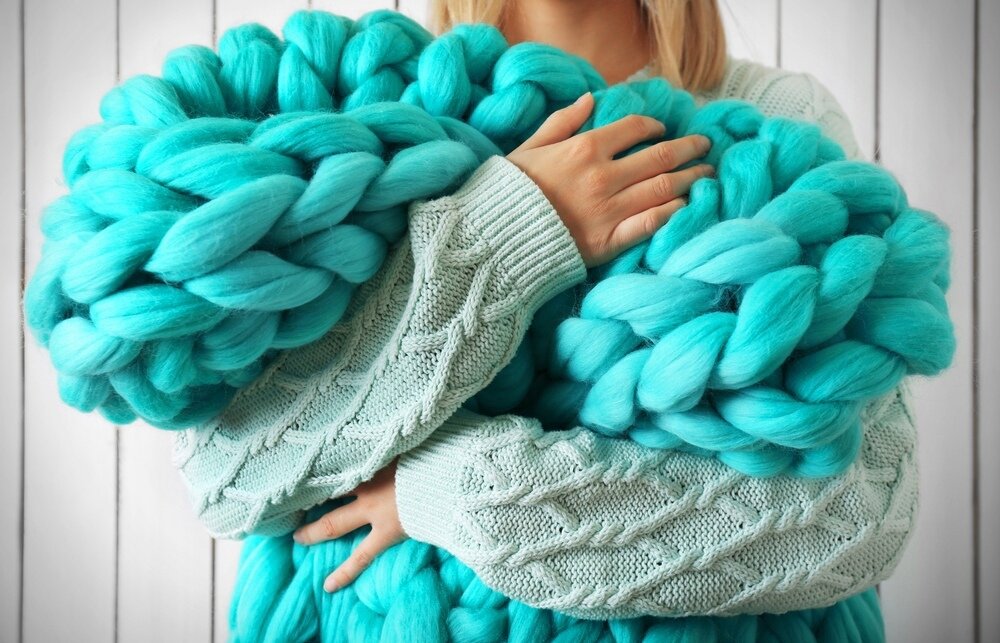 Купить Плед крупной вязки Dollywool, 100*150 см, цвет тиффани
