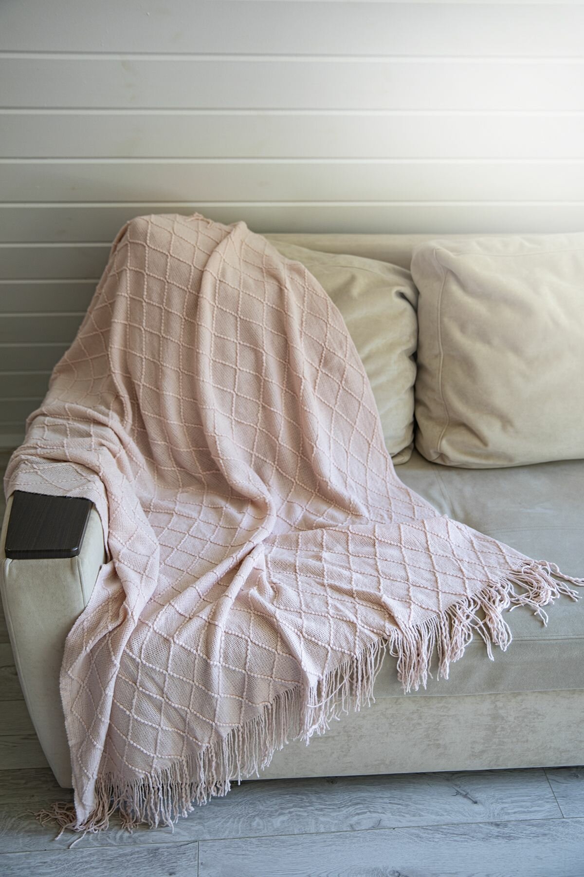Купить Плед покрывало декоративное Скандинавский стиль, однотонное, вязаный, DAO Home, 170х130 см, - Розовый
