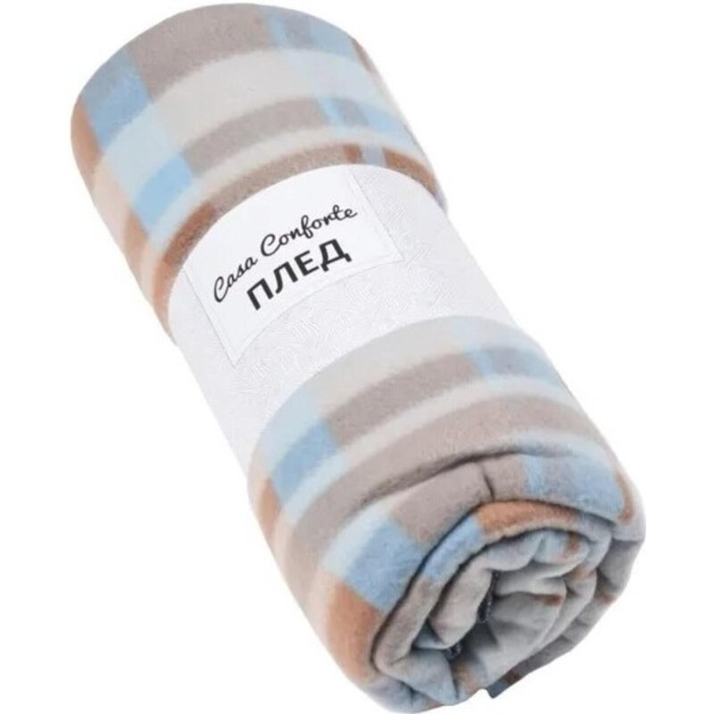 Плед флисовый 130х170 см, Casa Conforte Лондон, коричневый в клетку
