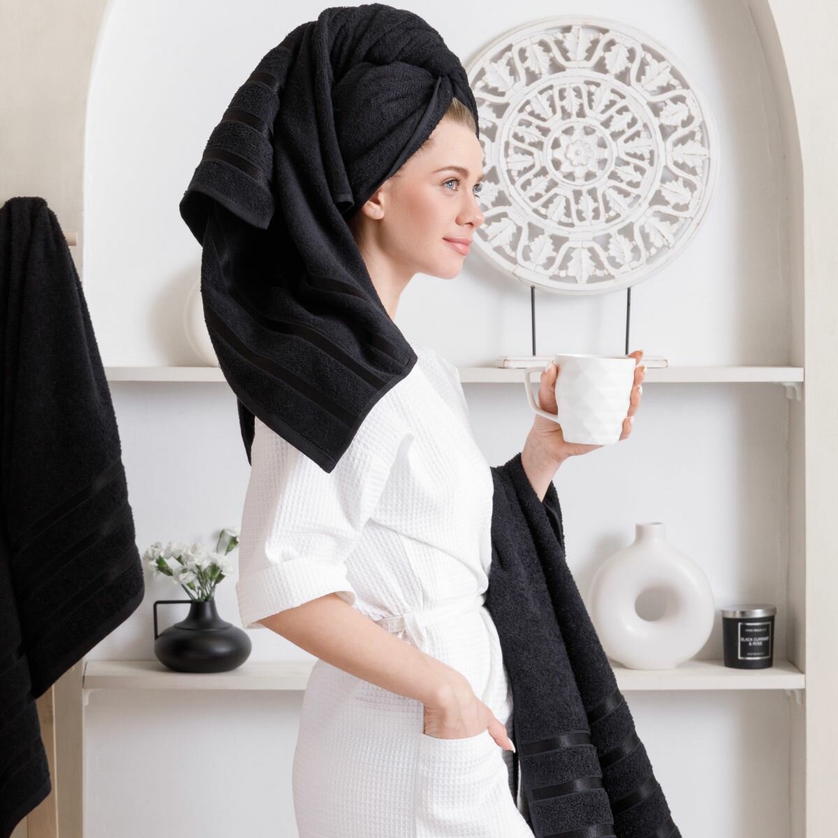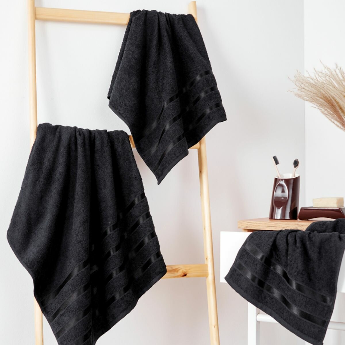 Набор полотенец махровых (30х50 см, 50х90 см, 70х140 см), Diana, цвет:Черный