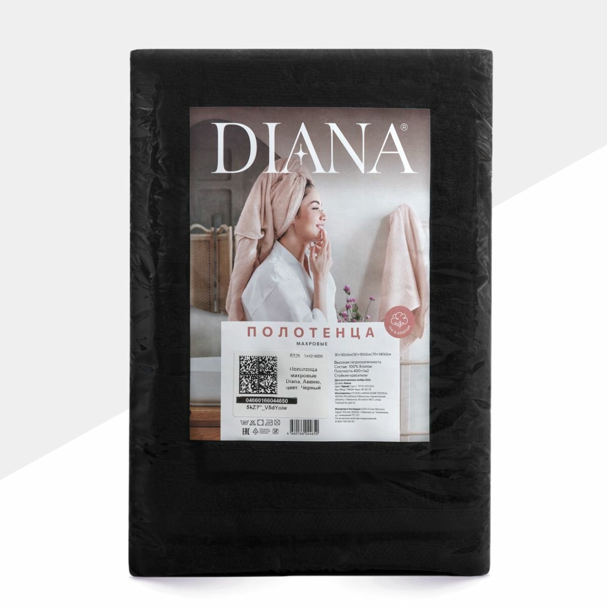 Полотенце махровое 3 шт, 30х50, 50х90, 70х140, Diana, Нуар, цвет: Черный