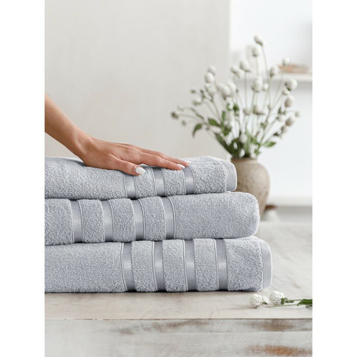 Купить Набор полотенец махровых Diana, Авеню, 3 шт 30х50, 50х90, 70х140, 100% хлопок, Туманный серый