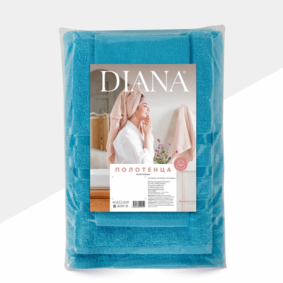 Полотенце махровое 3 шт, 30х50, 50х90, 70х140, Diana, Нуар, цвет: Лазурь