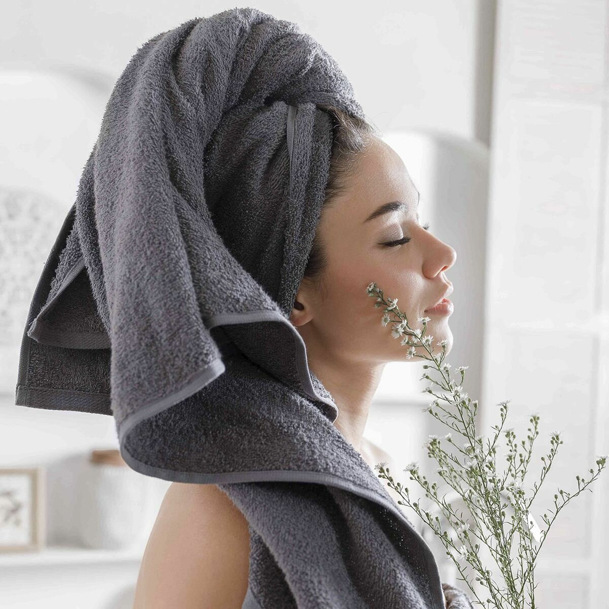 Полотенце махровое 3 шт, 30х50, 50х90, 70х140, Diana, Нуар, цвет: Белая лилия