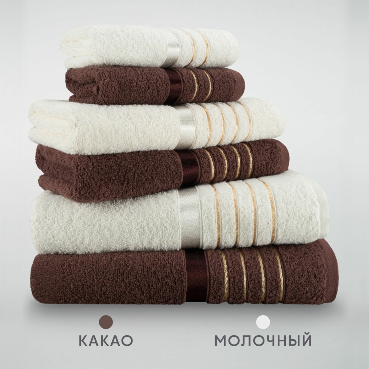 Набор полотенец махровых Diana "Эваланж", 6 шт, Какао/Молочный, 100% хлопок