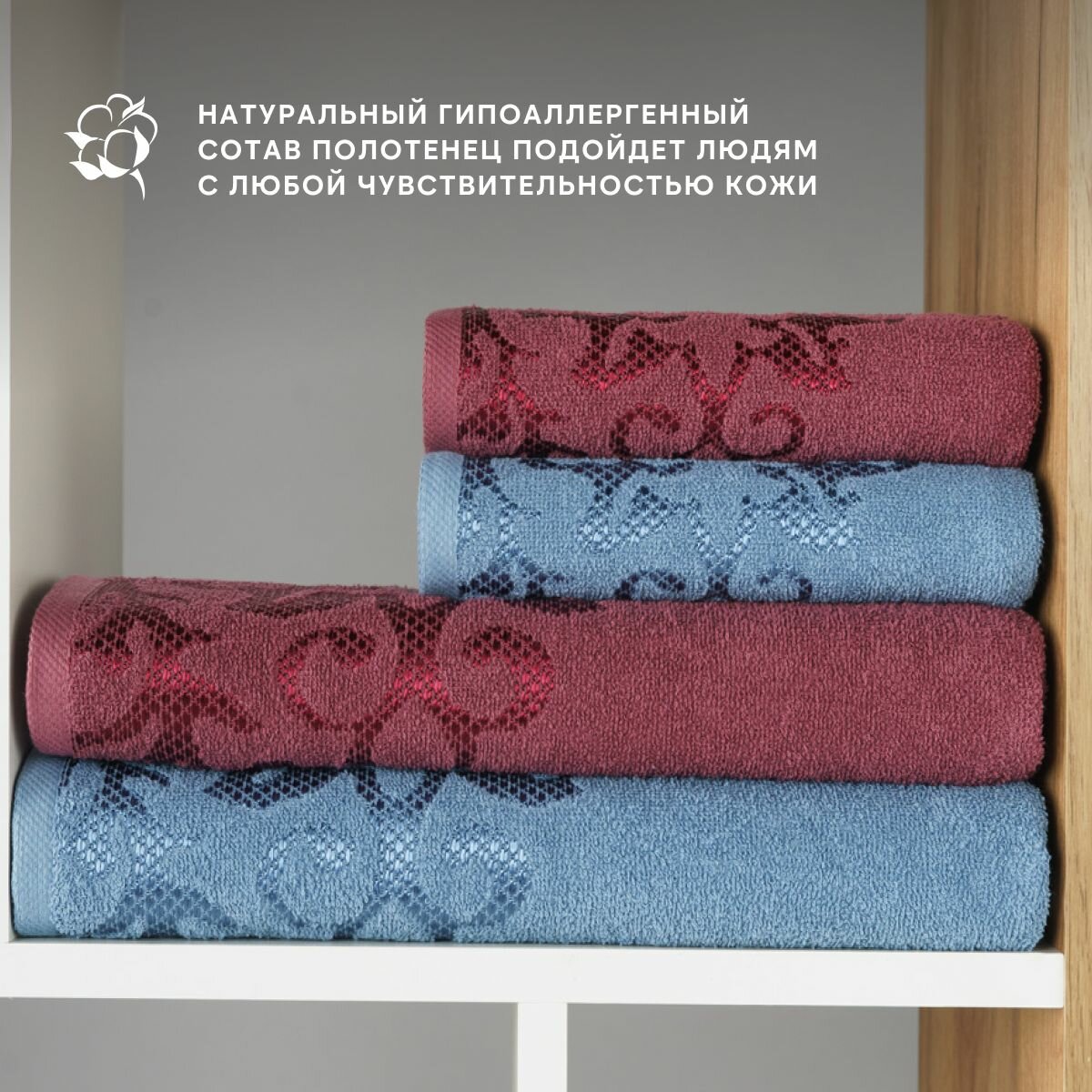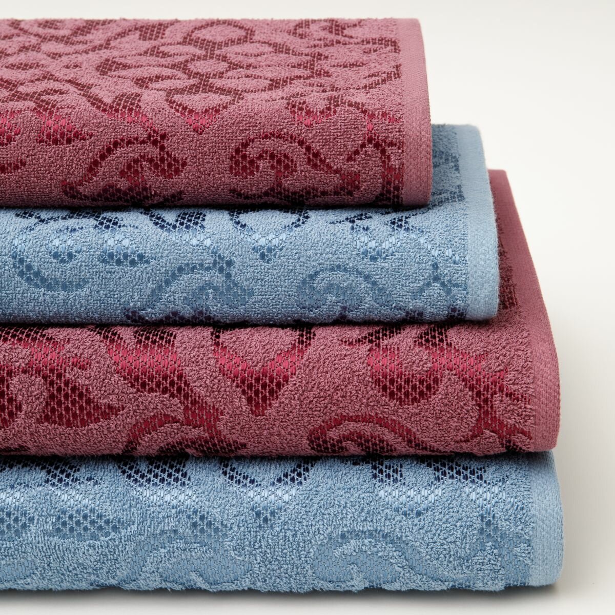 Набор полотенец махровых Diana "Пейсли", 4 шт, Вишня/Темно голубой, 100% хлопок