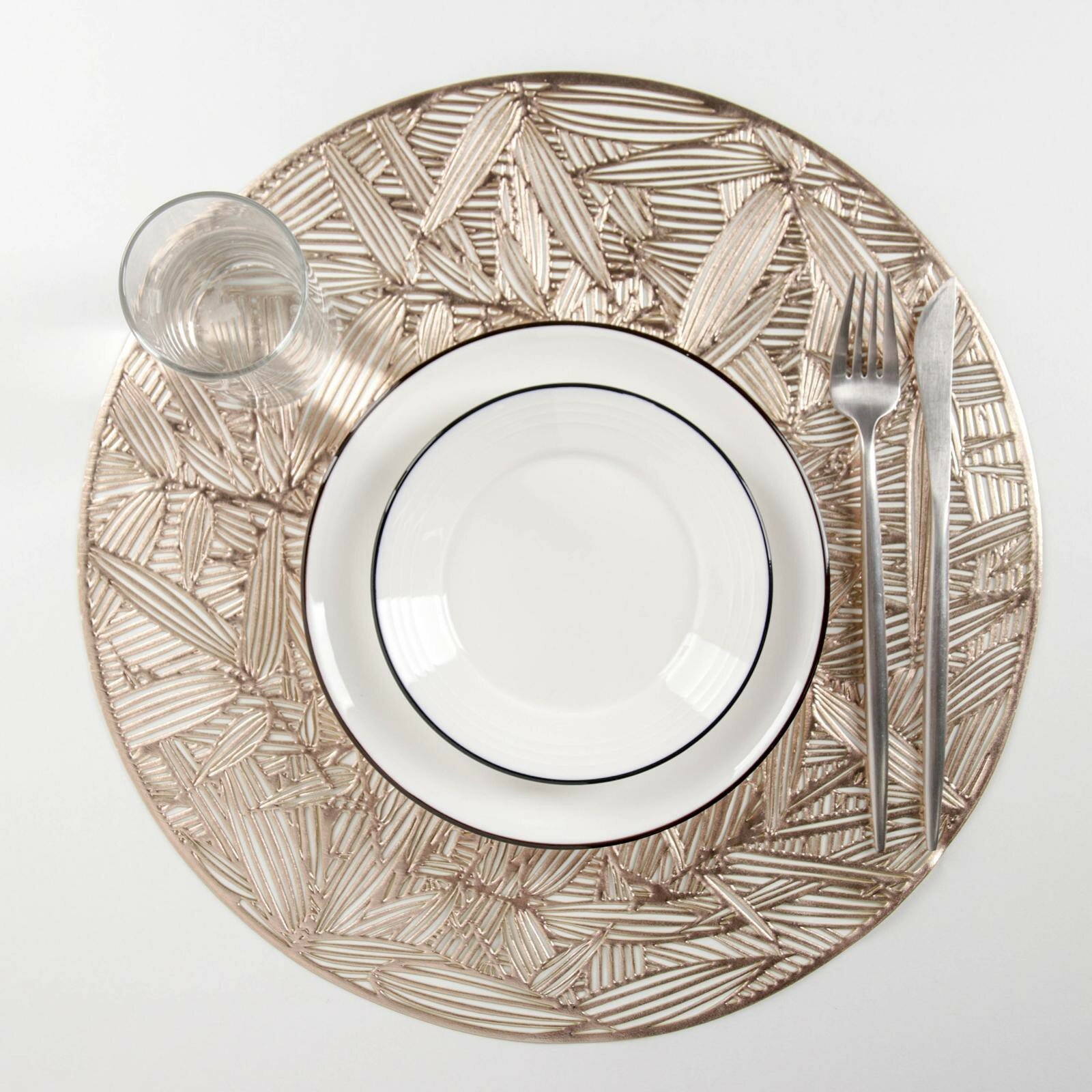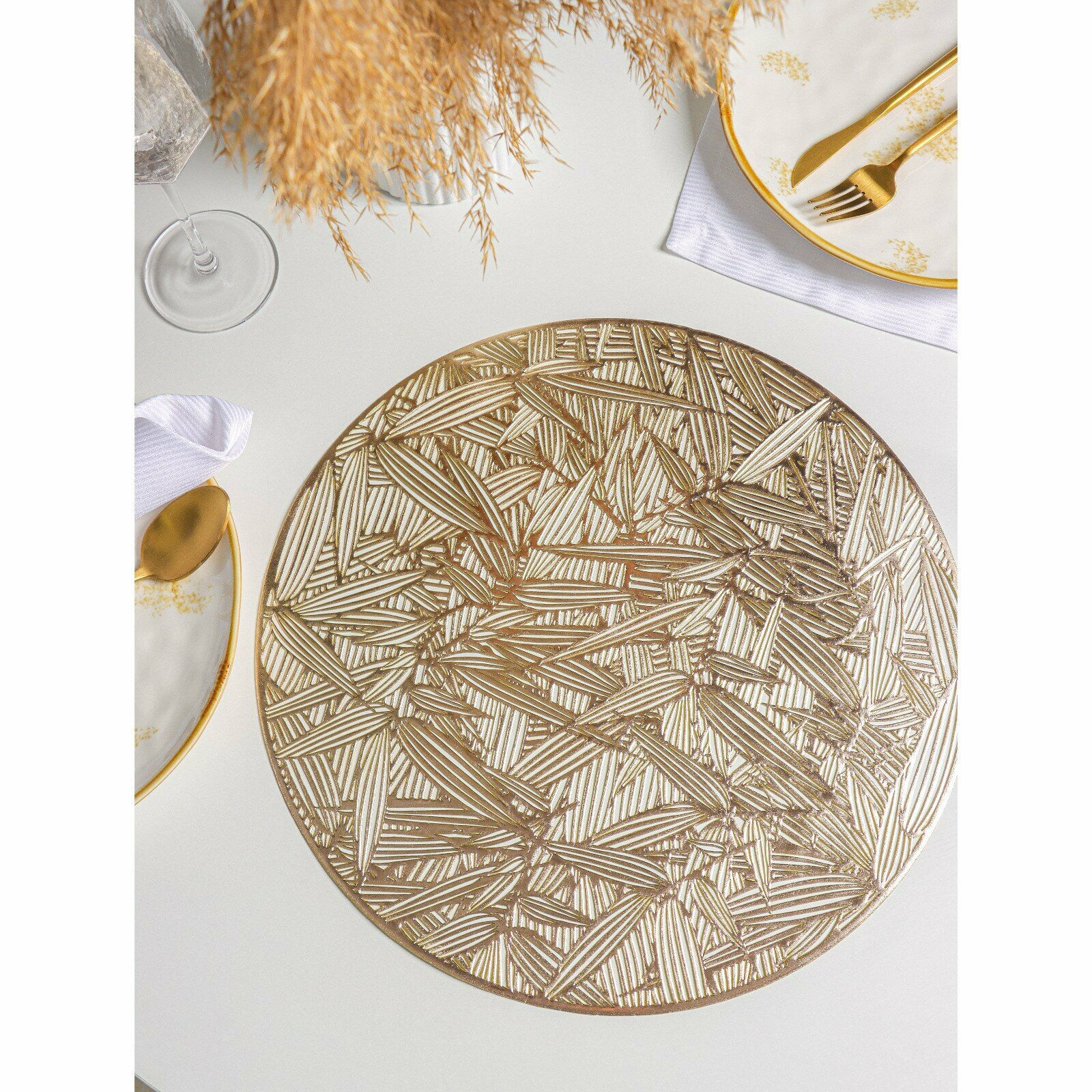 Салфетки сервировочные на стол Доляна «Листья», d=38 см, 4 шт, золотые