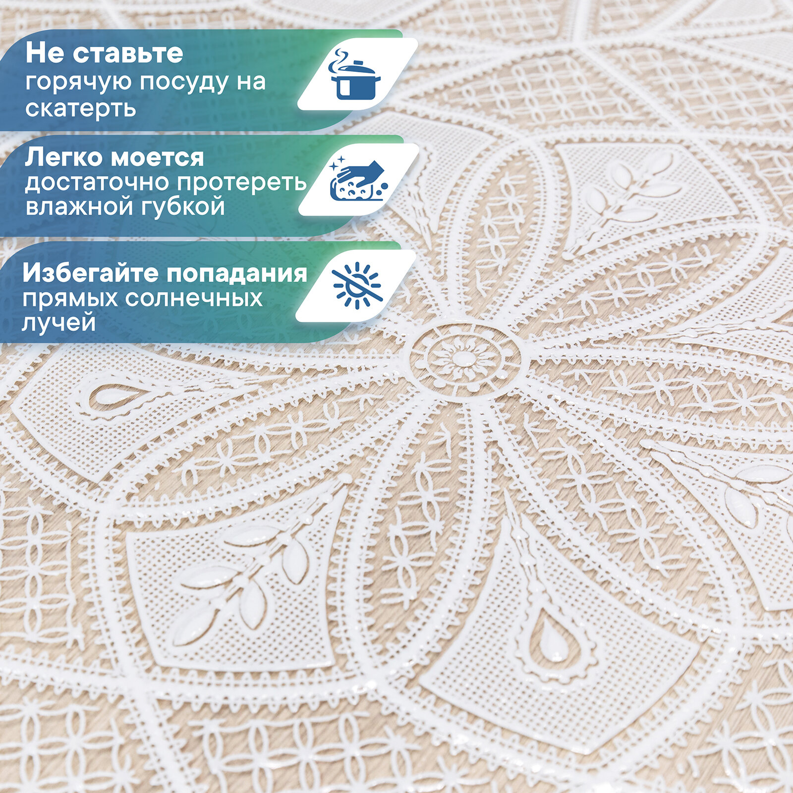 Скатерть клеенка VILINA "Элегия" прямоугольная водонепроницаемая на стол для кухни с узором кружево 110х135 см 014-white