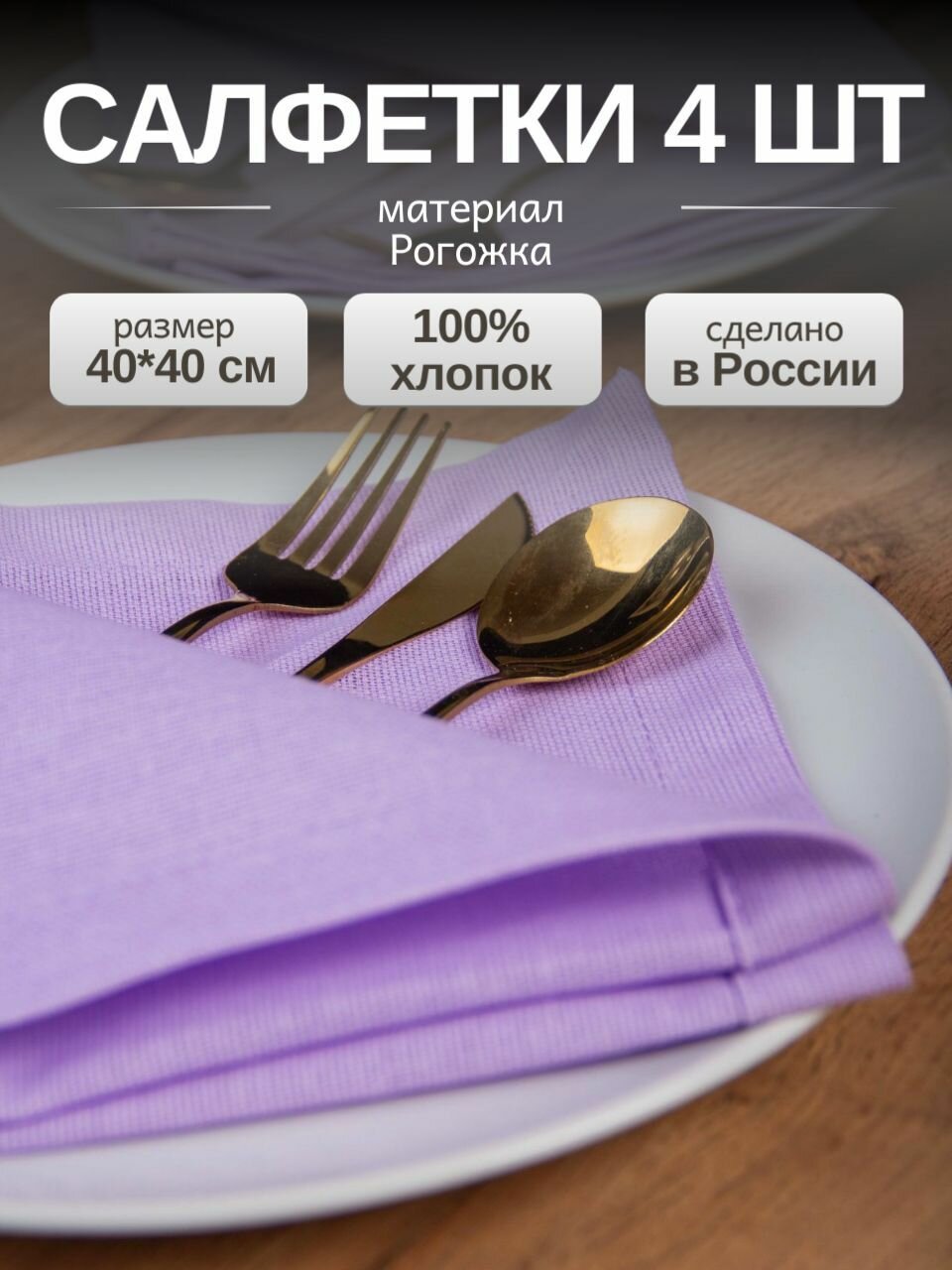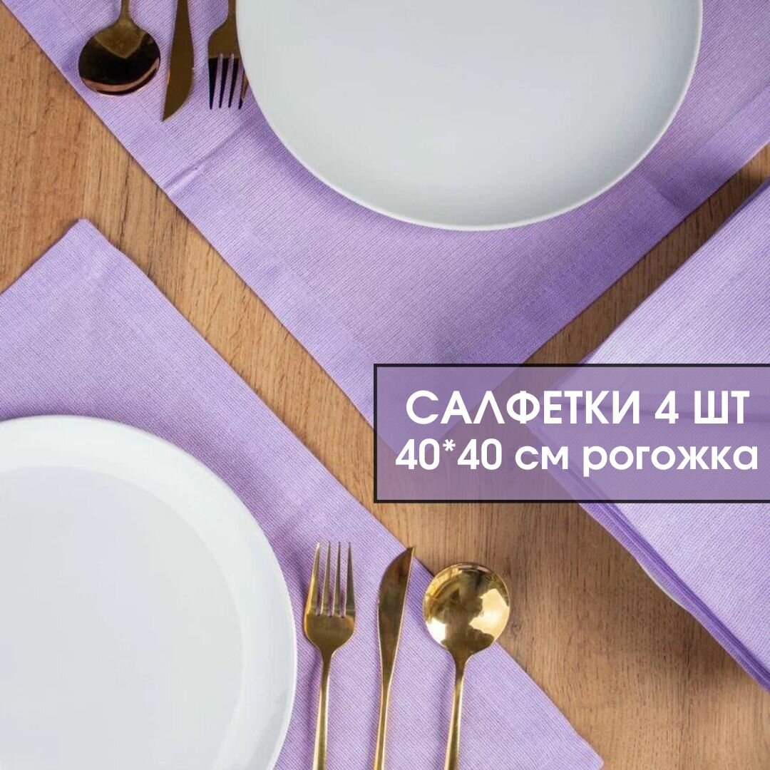 Купить Салфетки на стол сервировочные, квадратные / Набор сервировочных тканевых салфеток для украшения стола LeoHome 40х40 см, 4 шт, лавандовые - фиолетовые, хлопок 100%