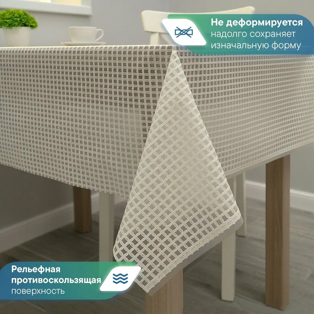 Скатерть клеенка VILINA "Элегия" прямоугольная водонепроницаемая на стол для кухни 110х135 см. 001-beige