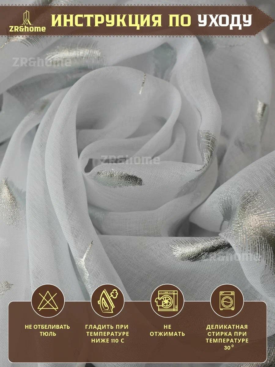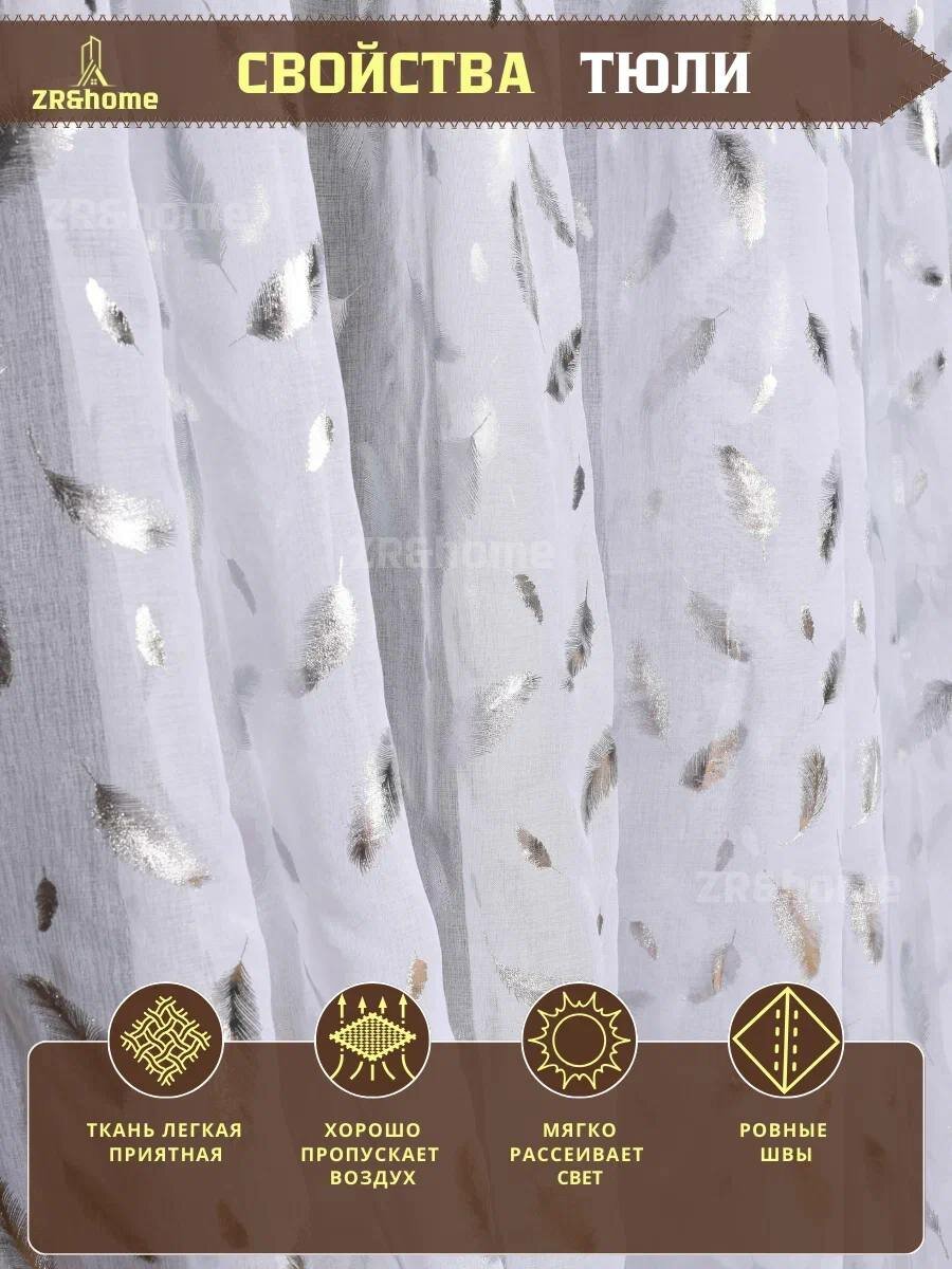 Тюль "Перья" 200x230 см, ZR&home, готовый под лен, серебристый