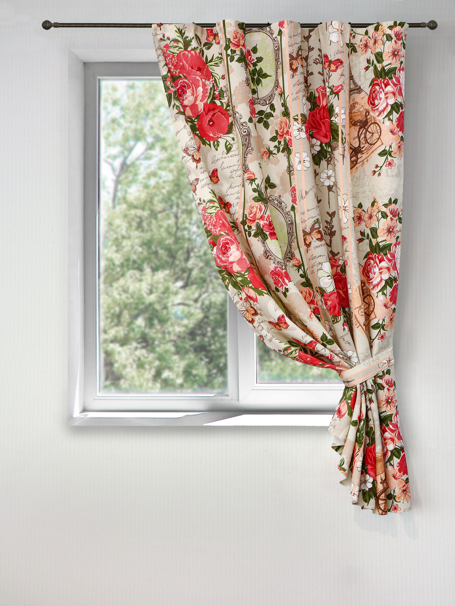 Штора для кухни короткая с подхватом 150х180 см хлопок Розы на бежевом
