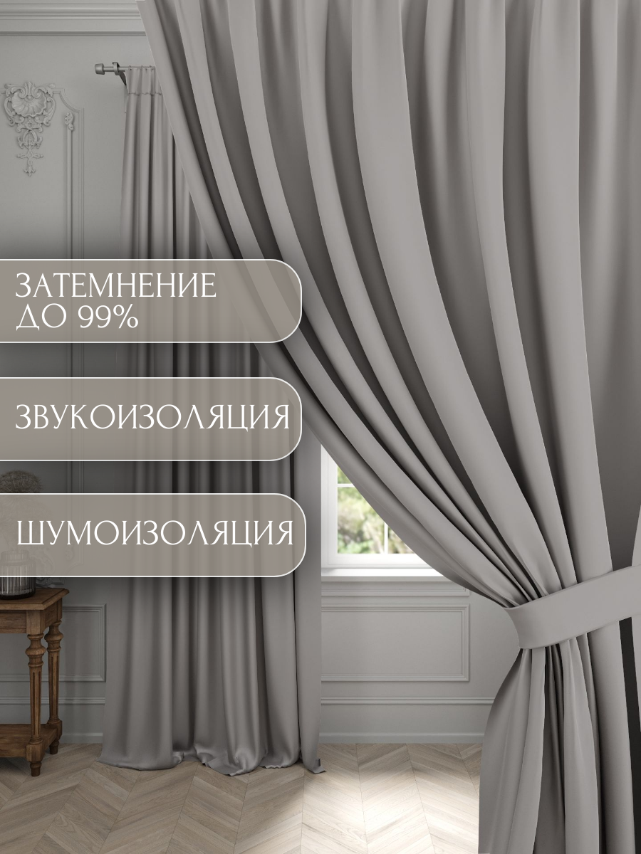Комплект штор Блэкаут 2 шт. 150*260 см для гостиной, детской и спальни, серый перламутровый