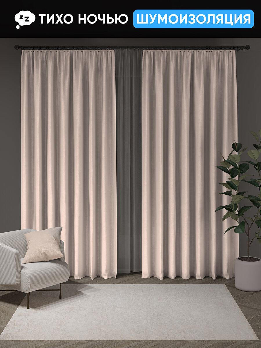 Шторы блэкаут однотонные плотные для спальни интерьерные бежевые 150х250 см (2 шт.)