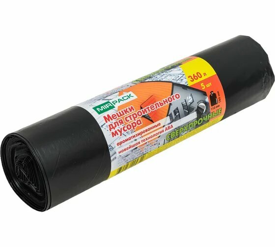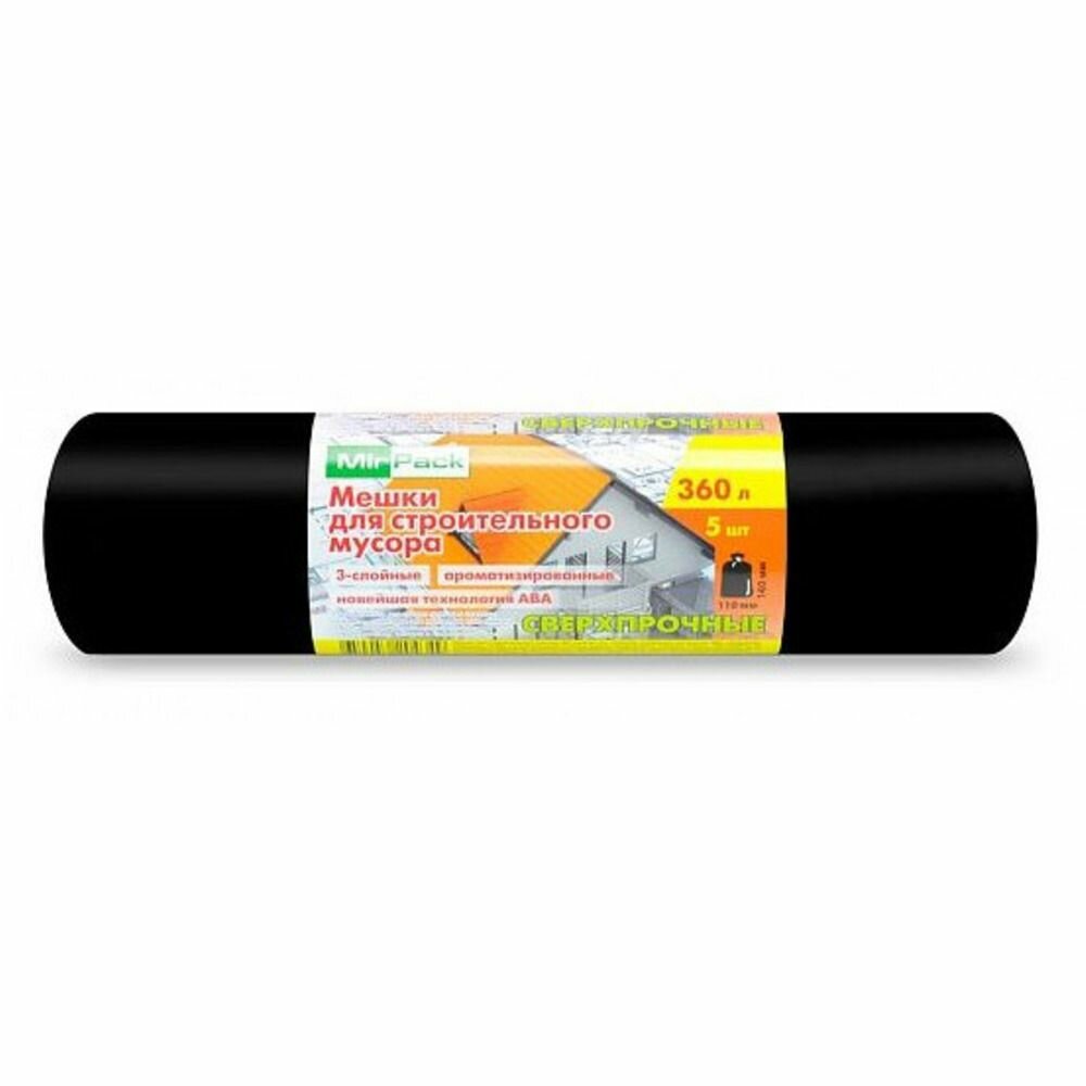 Мешки для мусора MIRPACK Стройка сверхпрочные 360 л, 5 шт, 1 упак, черный