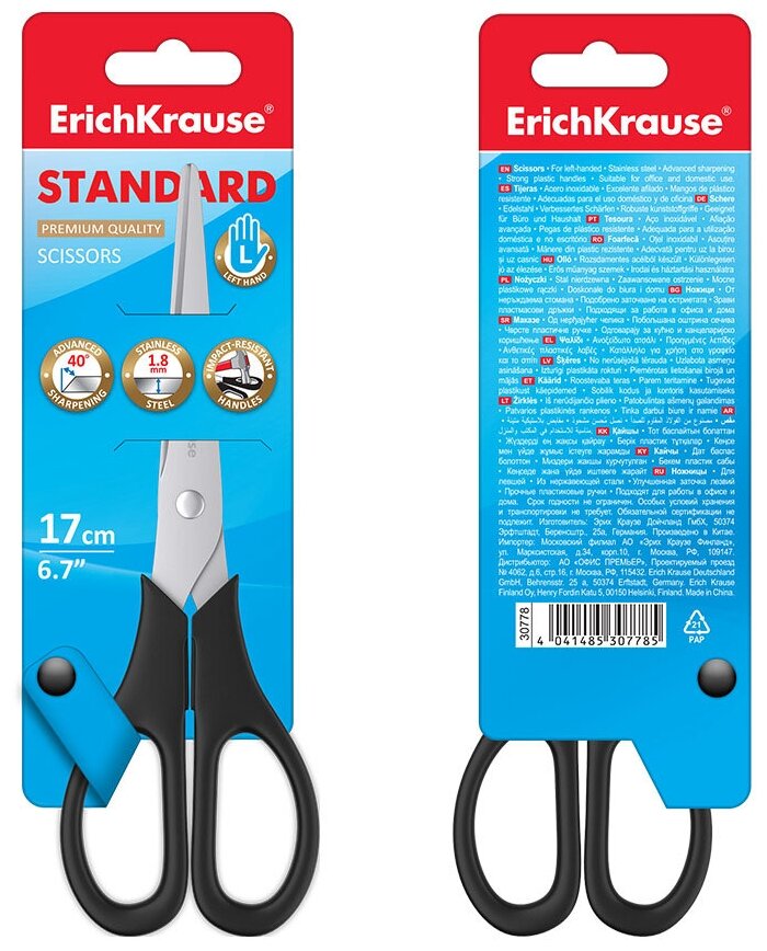 Купить Ножницы 170мм ErichKrause Standartl, для левшей