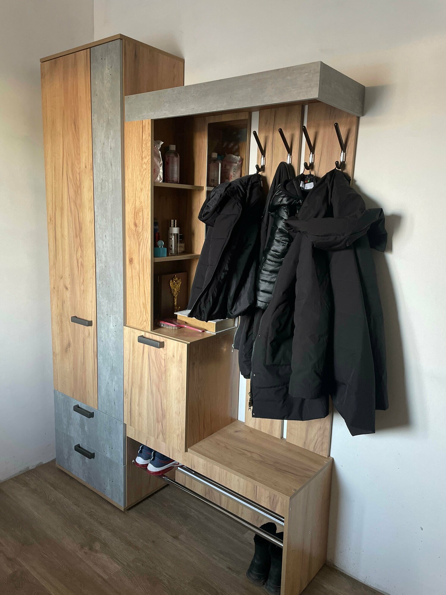 Ниже Вы можете прочитать отзывы на Прихожая трамп, светло-серый, ЛДСП, крючки, открытые и закрытые ниши, выдвижная штанга, зона для хранения обуви, ознакомится с подробными характеристиками, посмотреть интересные обзоры и фотографии на Прихожая трамп, светло-серый, ЛДСП, крючки, открытые и закрытые ниши, выдвижная штанга, зона для хранения обуви.