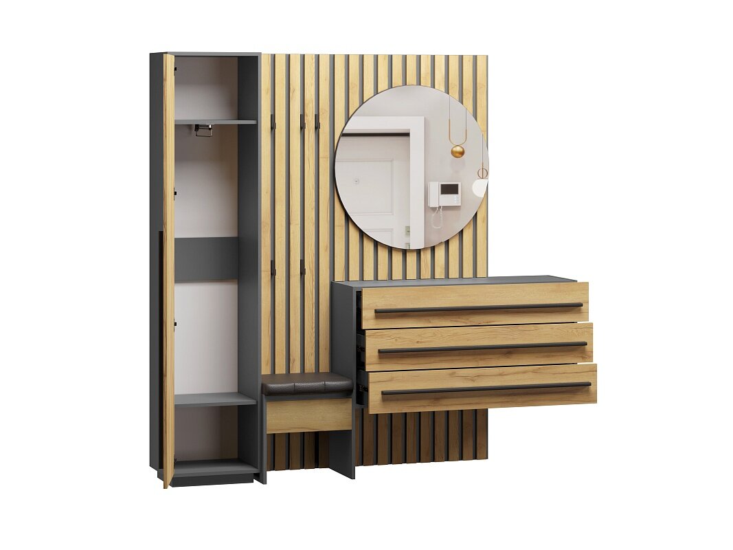 Купить Прихожая МебельЛэнд24 Неаполь - 3 Графит 205x38x200 серый с 1 зеркалом