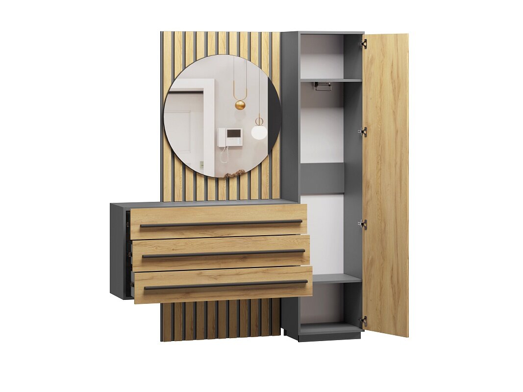 Прихожая МебельЛэнд24 Неаполь - 10 Графит 134x37x200 серый с 1 зеркалом