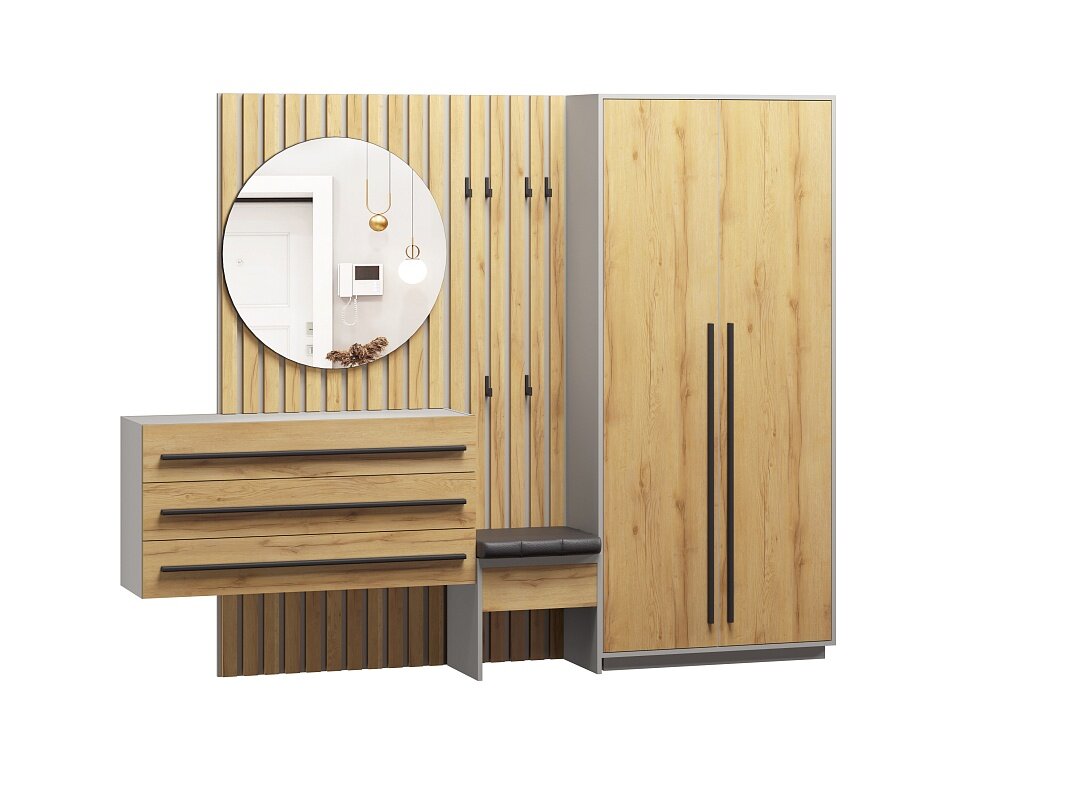 Прихожая МебельЛэнд24 Неаполь - 3 Графит 205x38x200 серый с 1 зеркалом