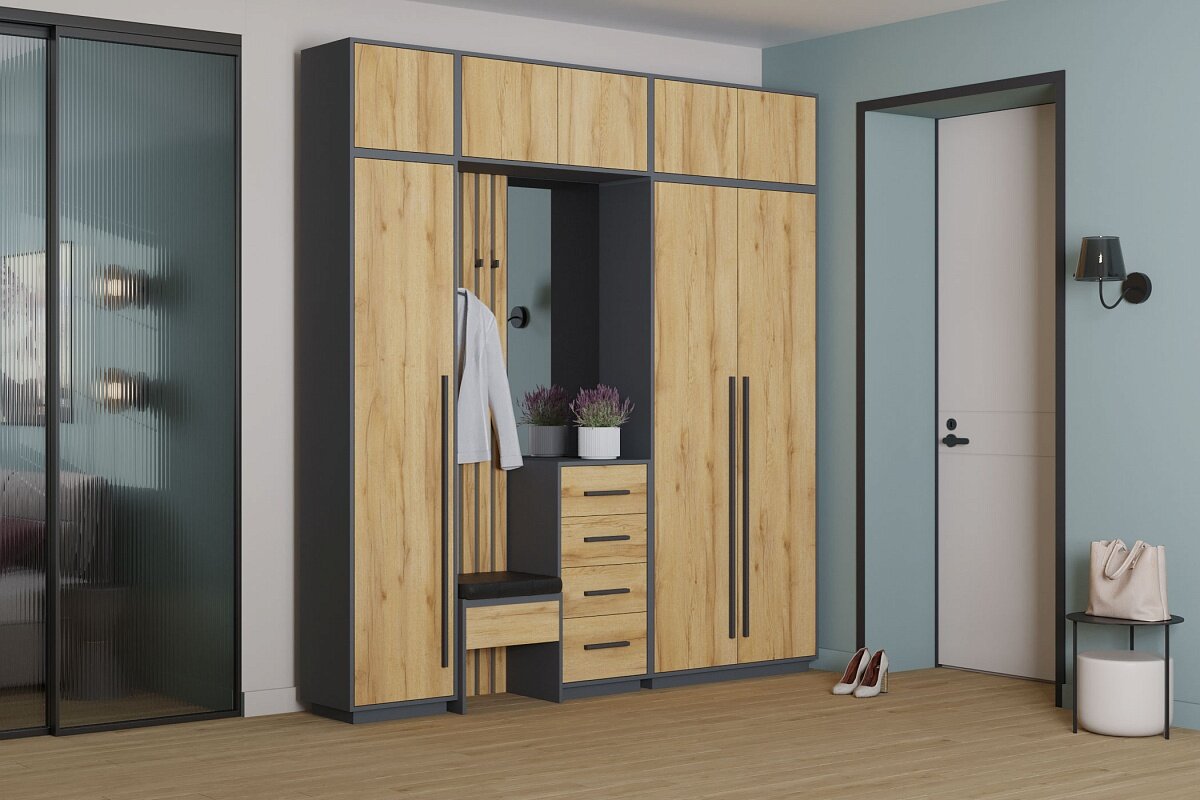 Прихожая Денвер, 800х360х1925, Графит/Дуб гранж