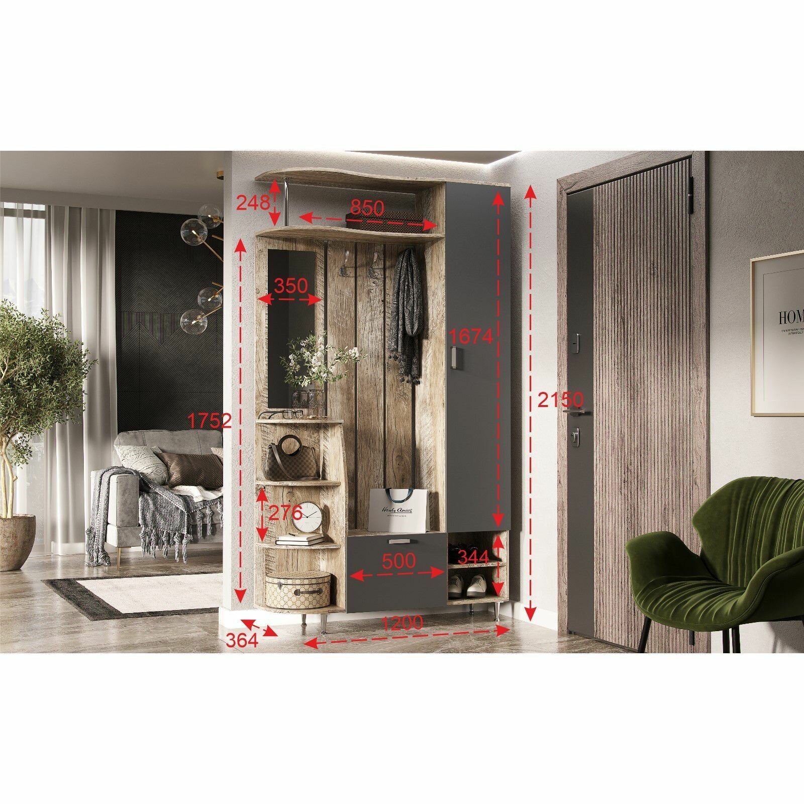 Прихожая Лика 2, 1200х364х2150, Дуб юкон/Графит