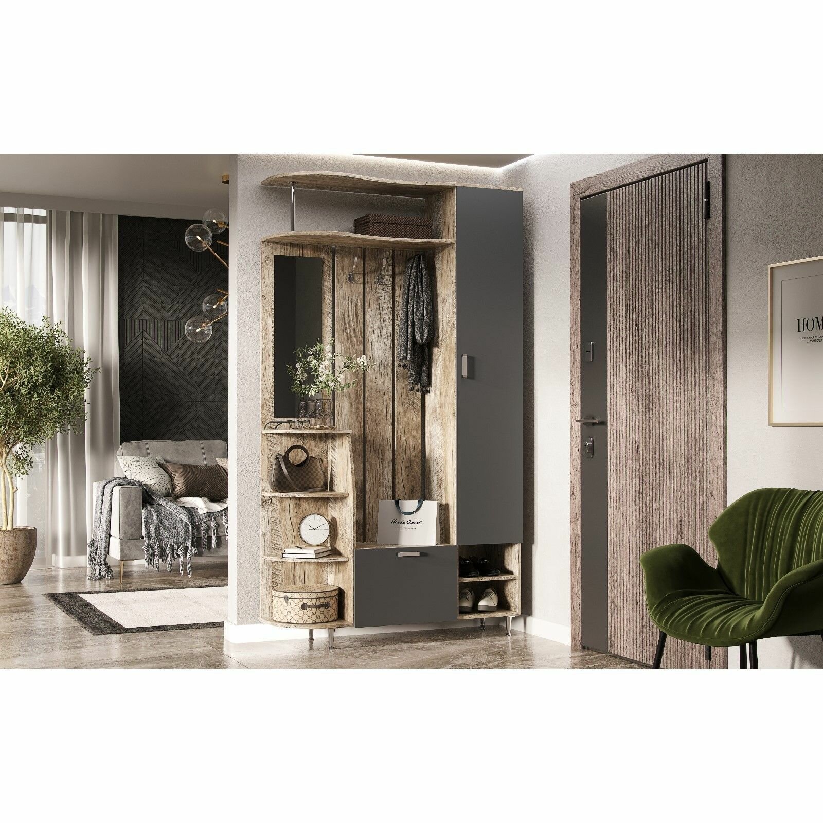 Прихожая Денвер, 800х360х1925, Графит/Дуб гранж