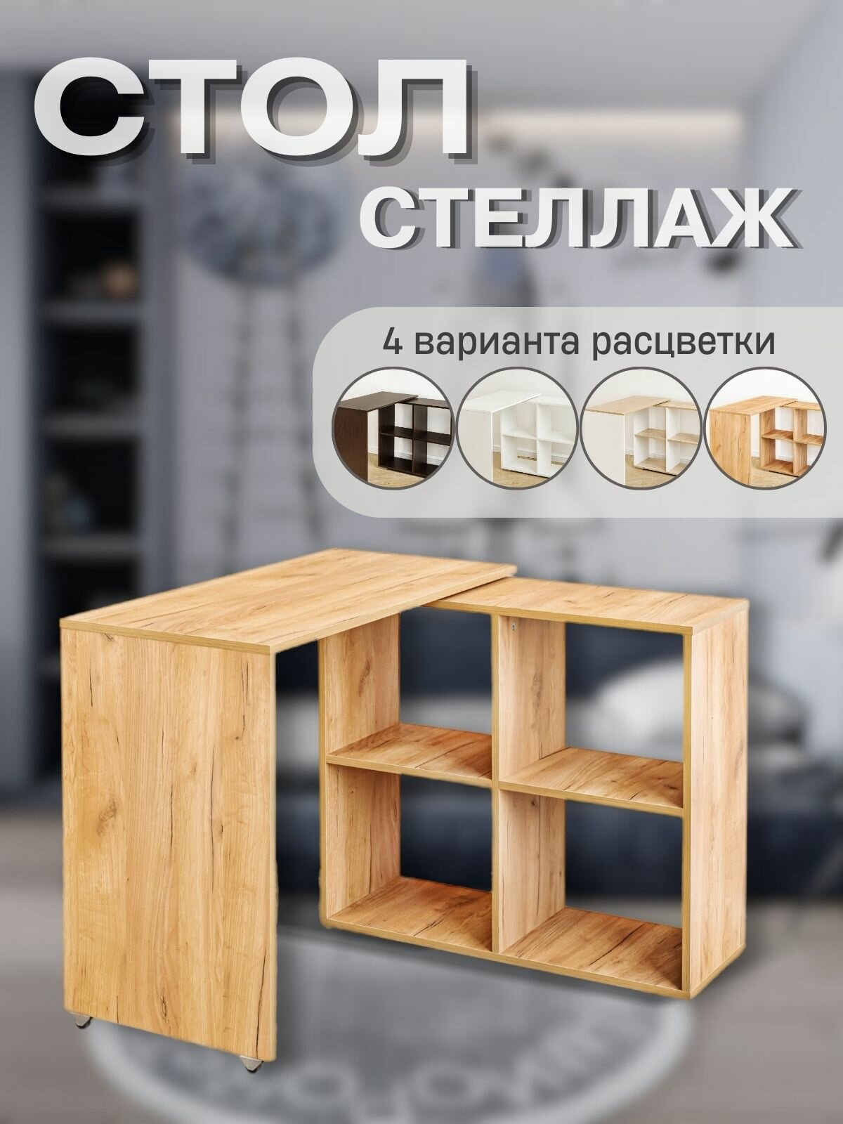 Стол-стеллаж трансформер с полками дуб Венге