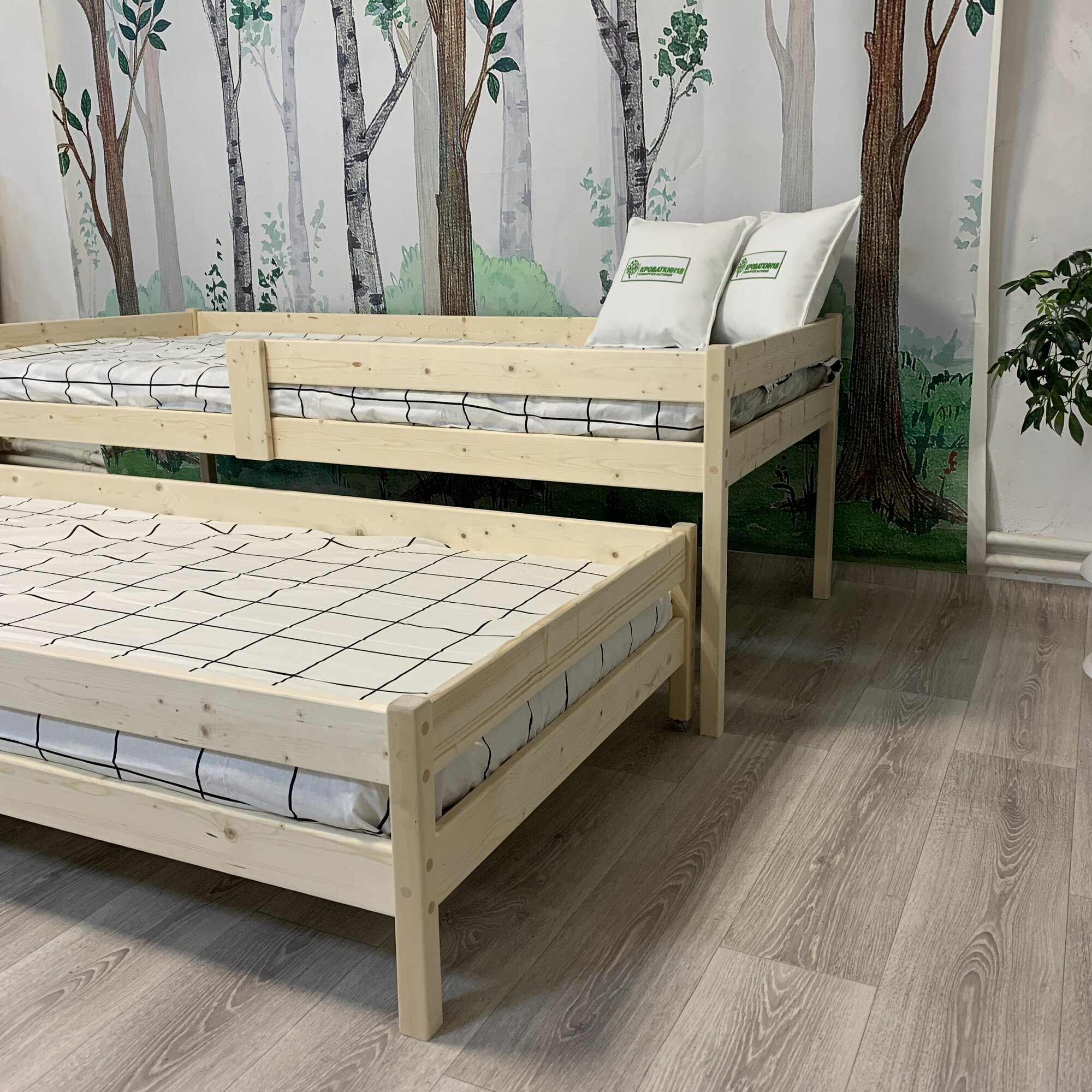 Кровать выдвижная, кровать выкатная детская для двоих, двухъярусная кровать "Эсла" 180х80, 170х80 из массива дерева (без покрытия)