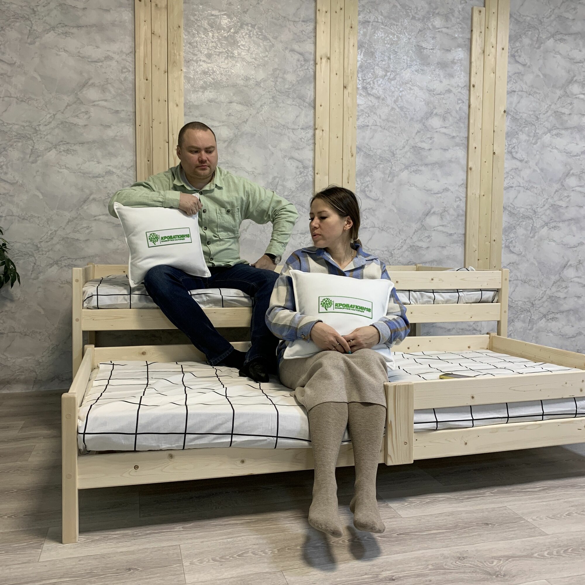 СохранитьКровать выдвижная, кровать выкатная детская для двоих, двухъярусная кровать "Эсла" с матрасами 160х70, 150х70 из массива дерева (бесцветный лак) интересное: