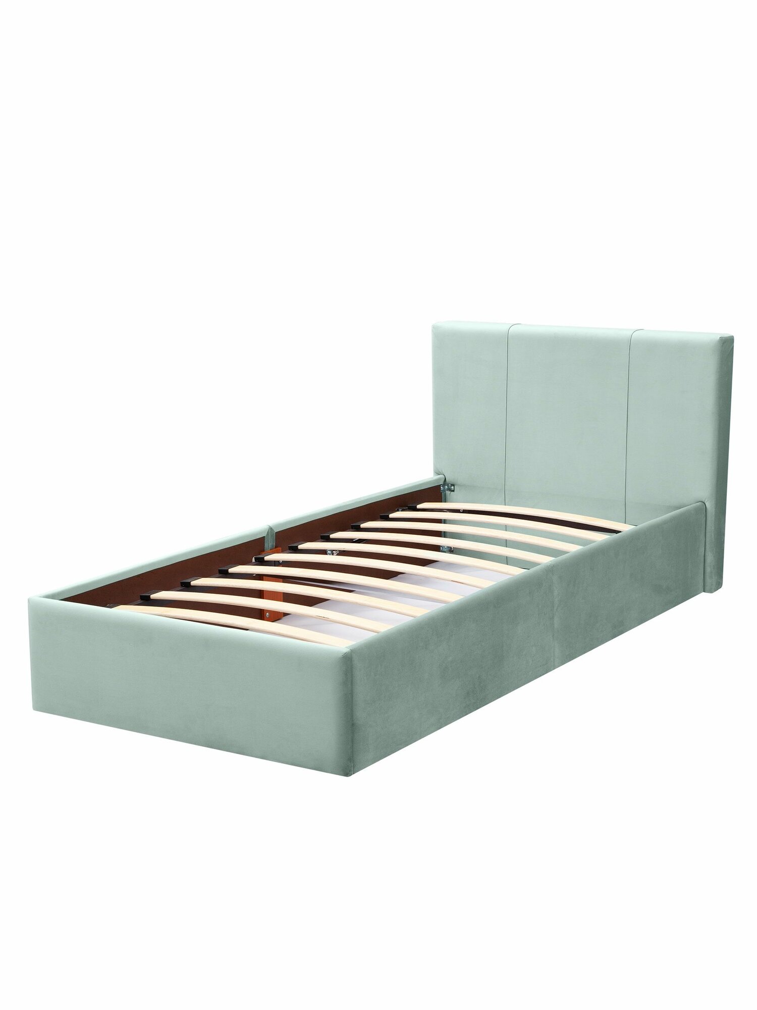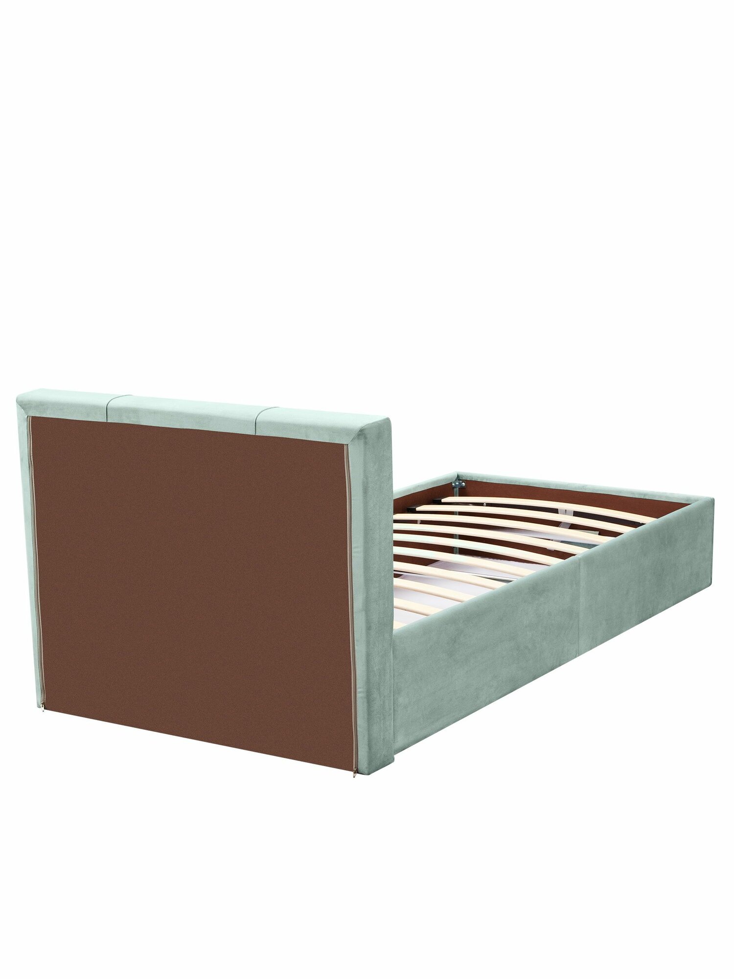 Односпальная кровать детская 90х190 см, подростковая с подъемным механизмом, ортопедическое основание, ламели усиленные, мягкое изголовье, ящик для белья, вельвет мятный, Ами Мебель Беларусь
