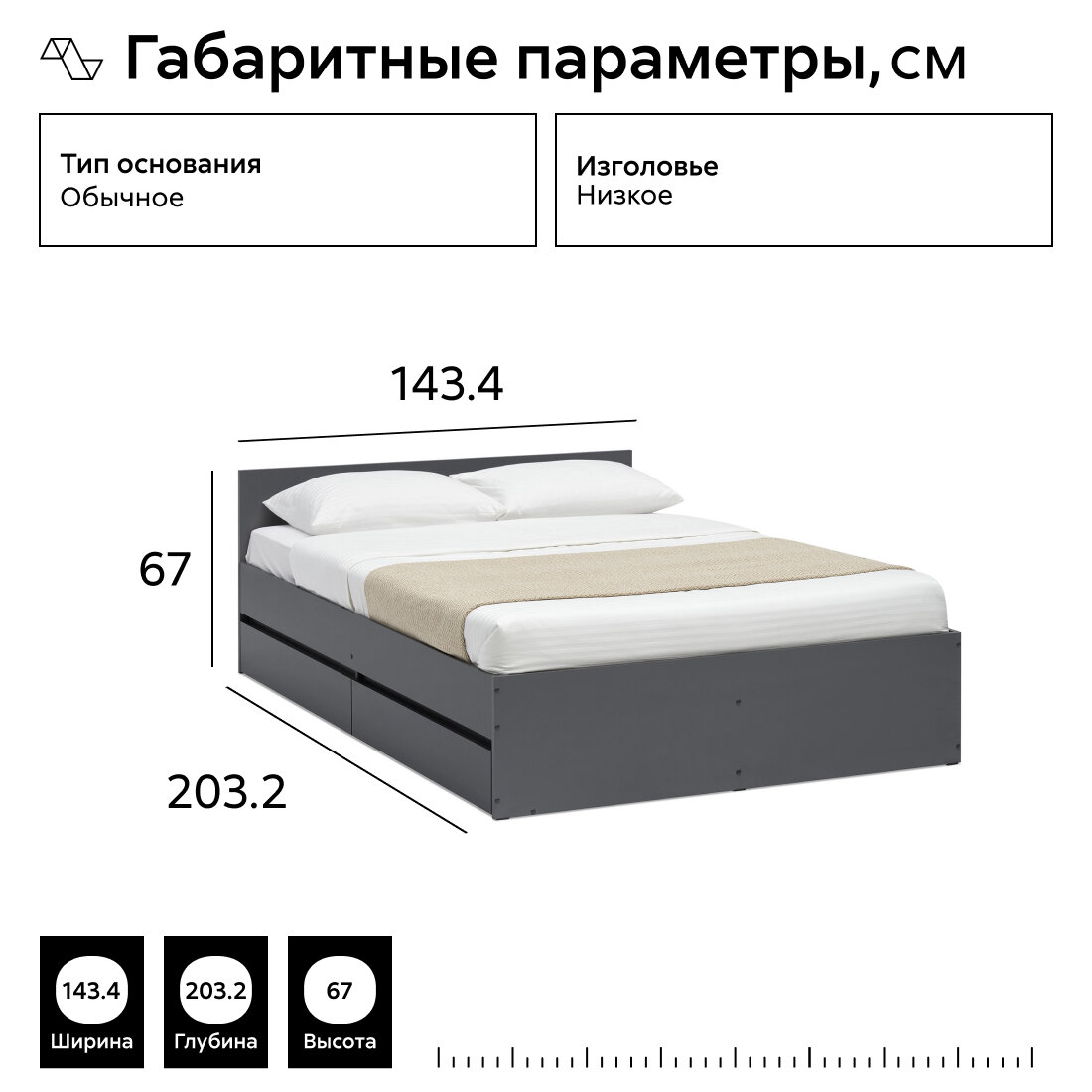 Кровать Нонтон Скайвуд с ящиками графит серый 143.4x203.2x67 см
