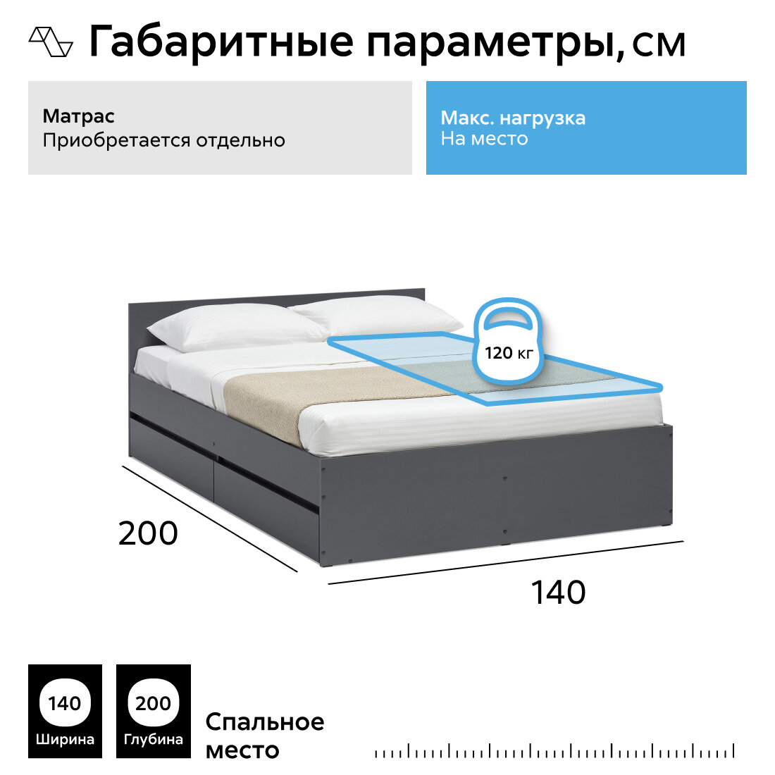 Купить Кровать Нонтон Скайвуд 140*200 см, графит серый