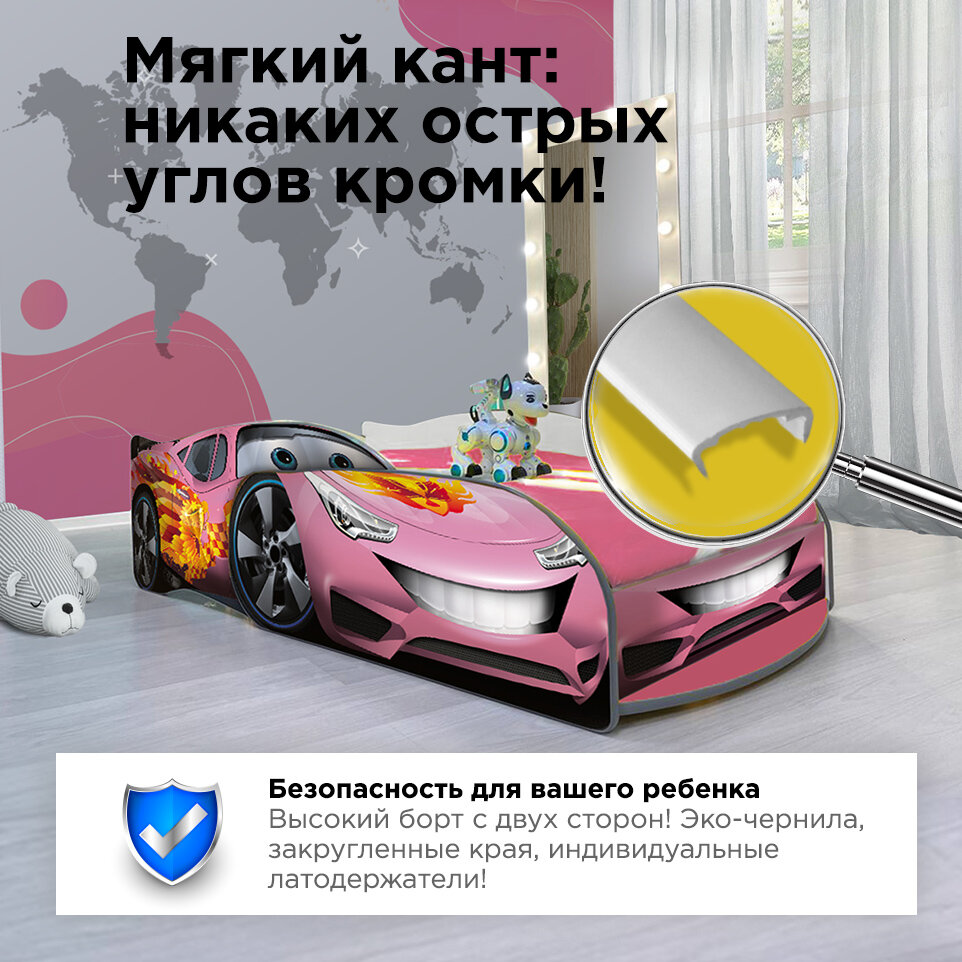 Кровать машина детская кровать для девочки «Формула Лайт 4.0» Розовая - 155/85/49см